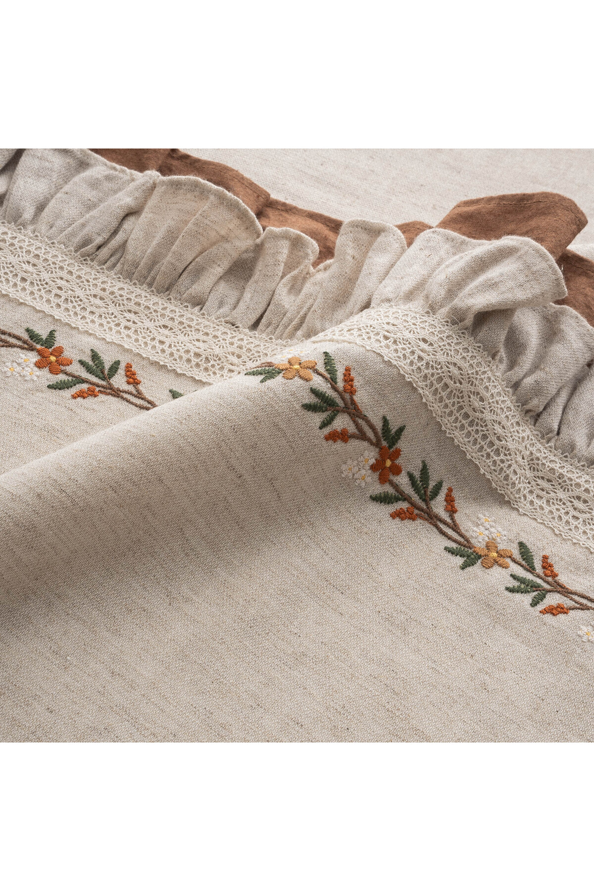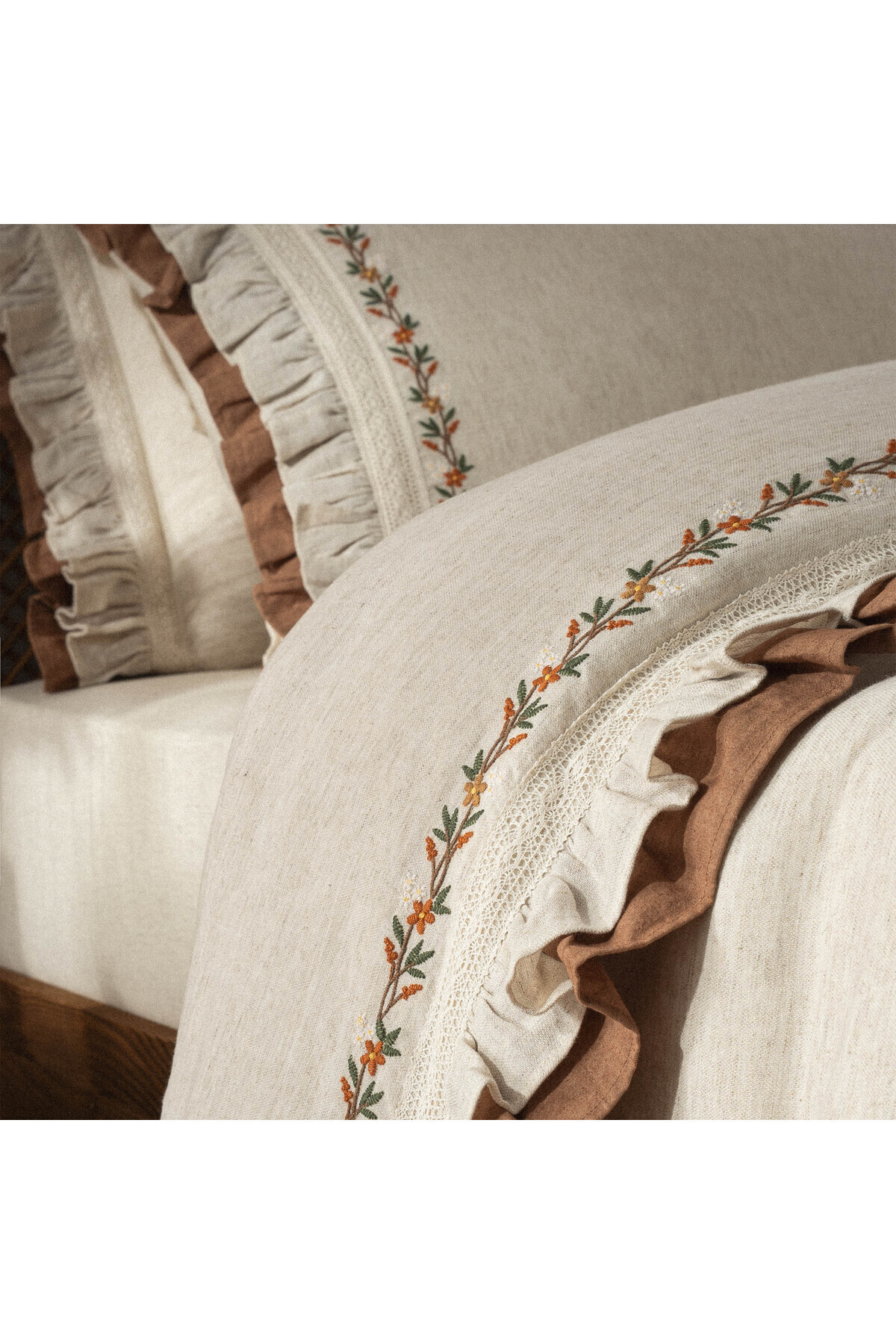 Maide Battal Boy Nevresim Takımı %100 Organik Pamuk Kenevir Karışımlı Nakışlı Bej 240x220 Cm