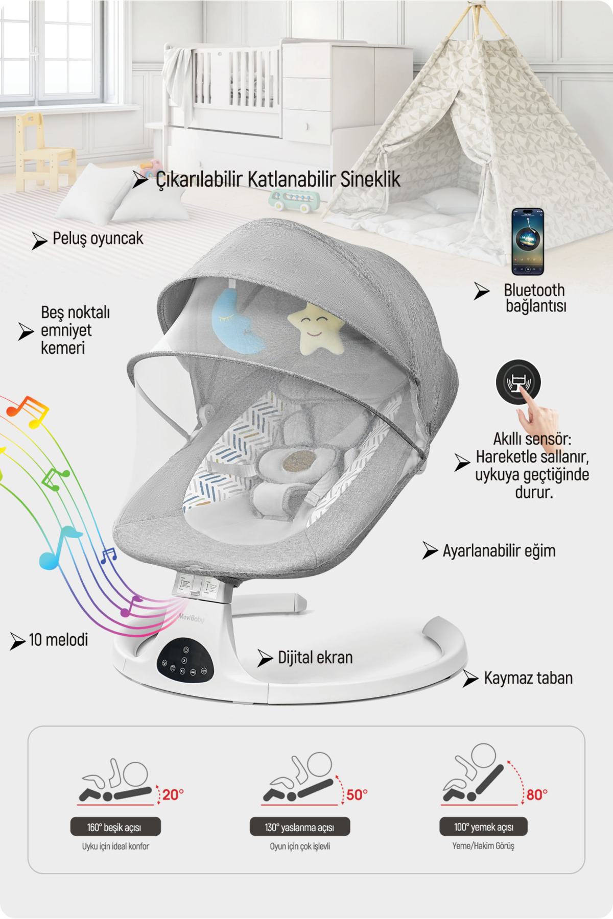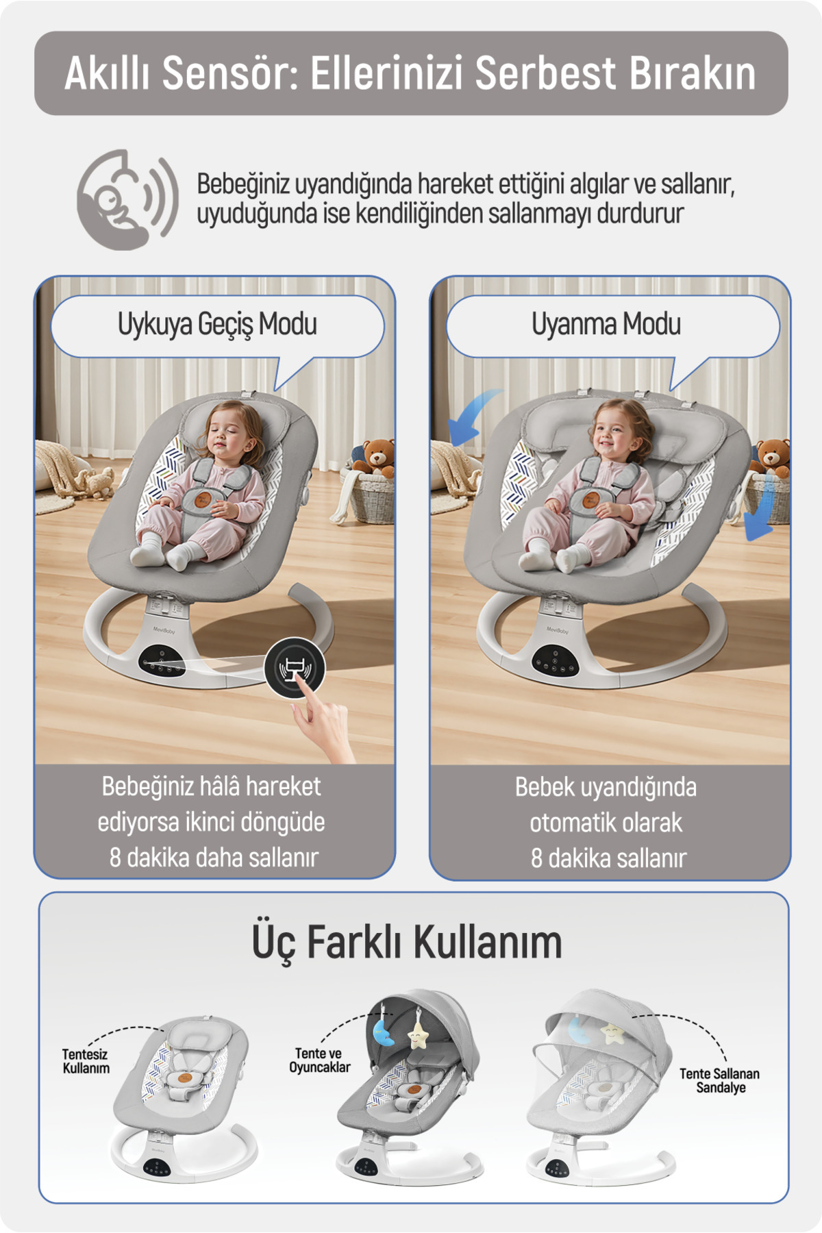 Movibaby Hareket Sensörlü Otomatik Ana Kucağı-Grey