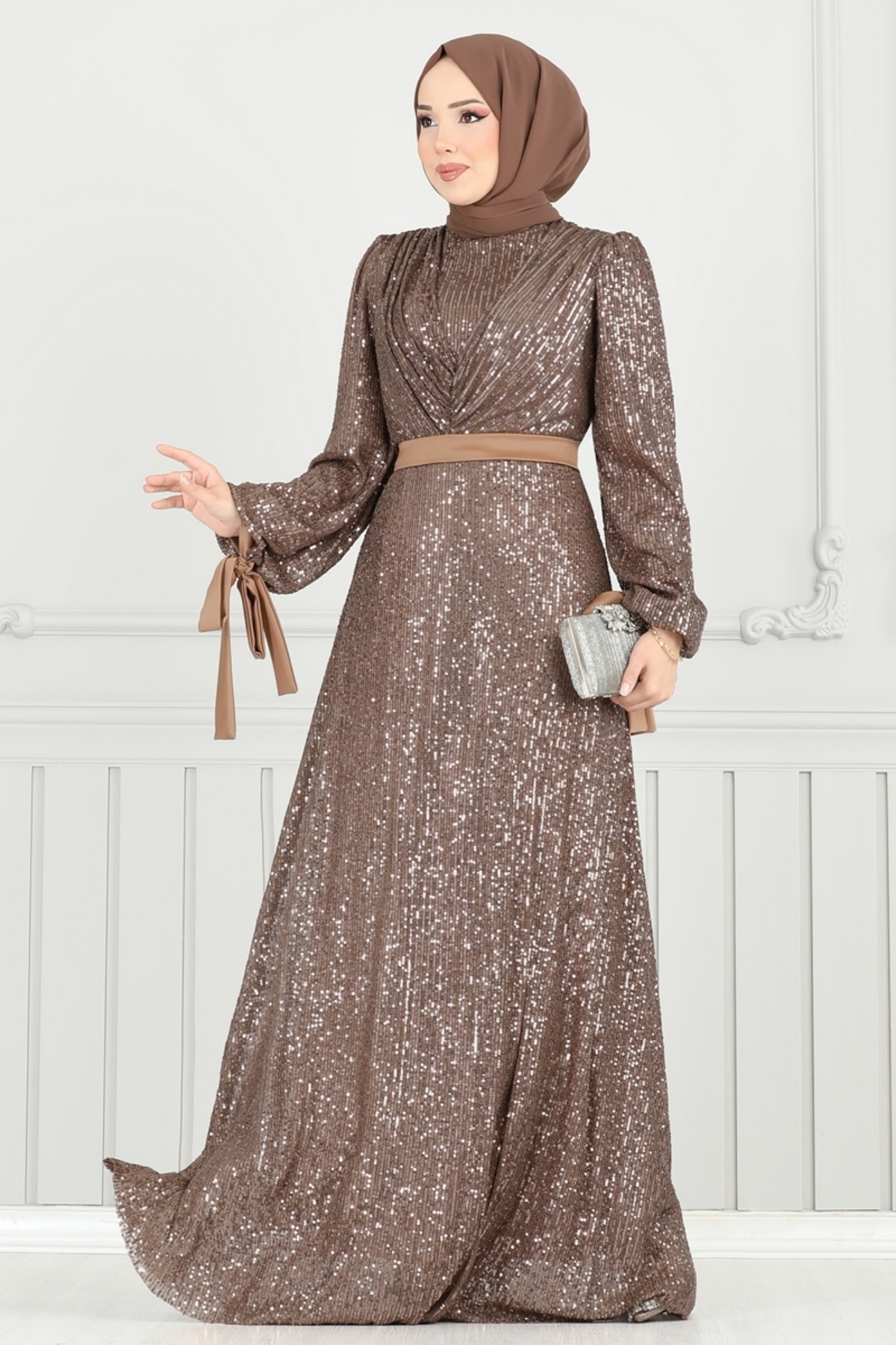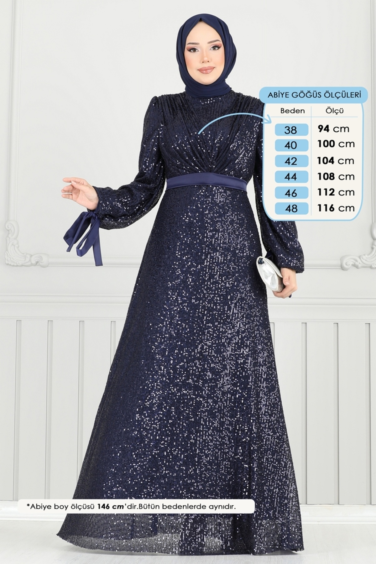 Göğsü Drapeli Tesettür Abiye 5690EDF311-MS Laci