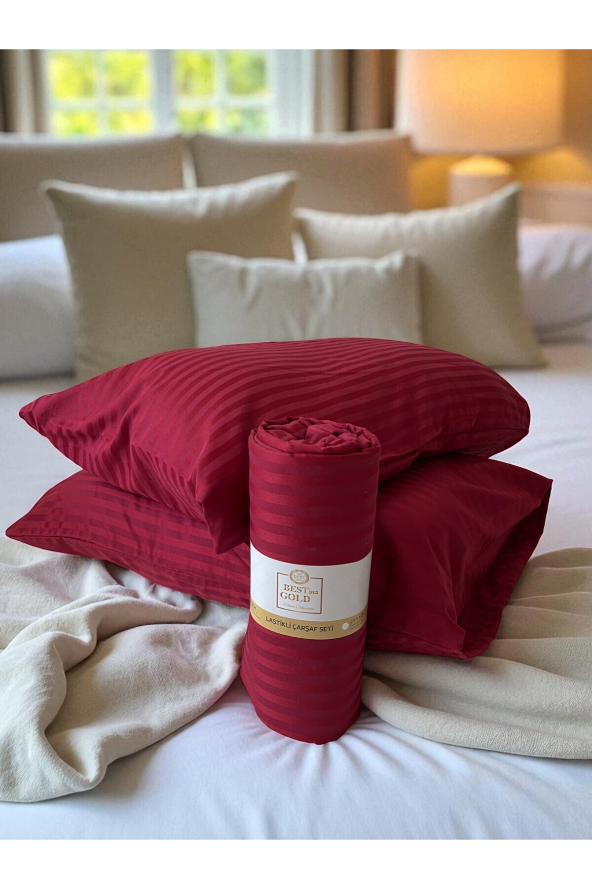 Yumuşaklığın Şıklıkla Buluştuğu Nokta: Çizgili Pamuk Saten Lastikli Çarşaf Seti Yatak odanızda hem konforu hem de zarif bir görünümü arıyorsanız, bu pamuk saten çizgili lastikli çarşaf seti tam size göre! Sade ama etkileyici çizgili deseniyle dikkat çeken bu set, uyku kalitenizi artırmakla kalmaz