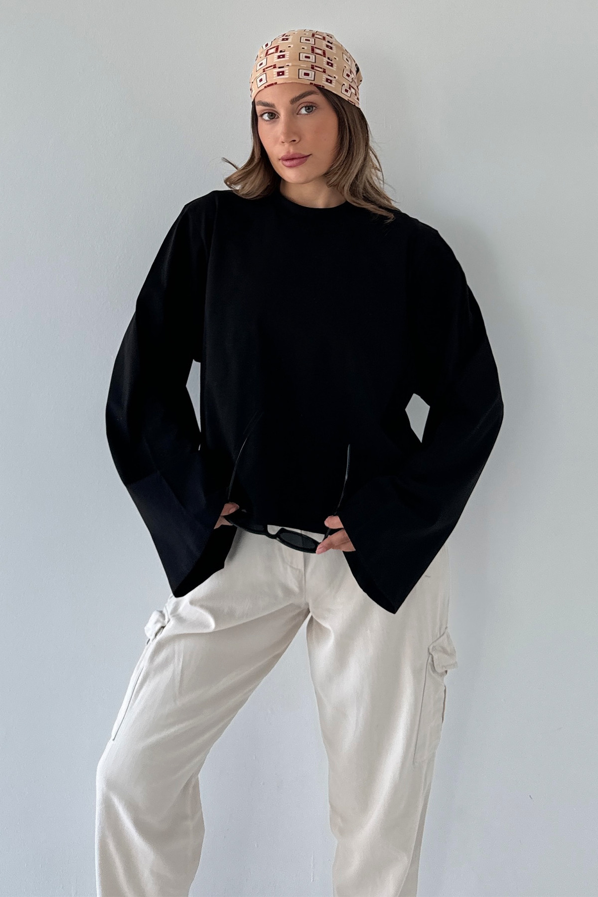 Geniş kol detayı ve kapalı yaka kesimiyle hem rahat hem şık bir görünüm sunar.