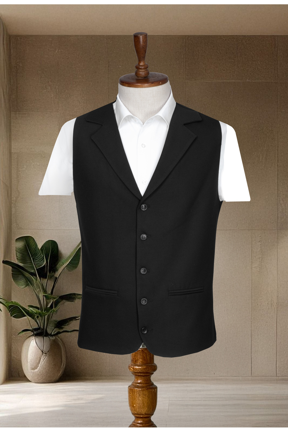 Siyah V Yaka Slim Fit Klasik Erkek Yelek