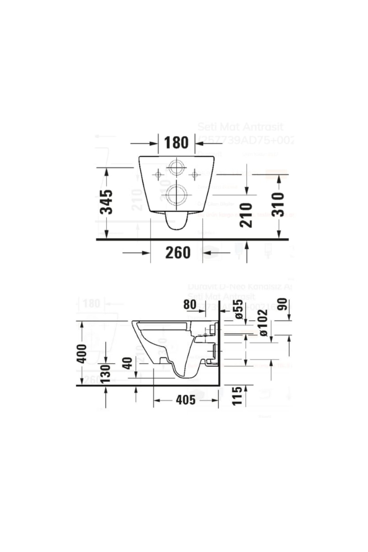 257739AD75 D-Neo Kanalsız Asma Klozet Seti Mat Antrasit