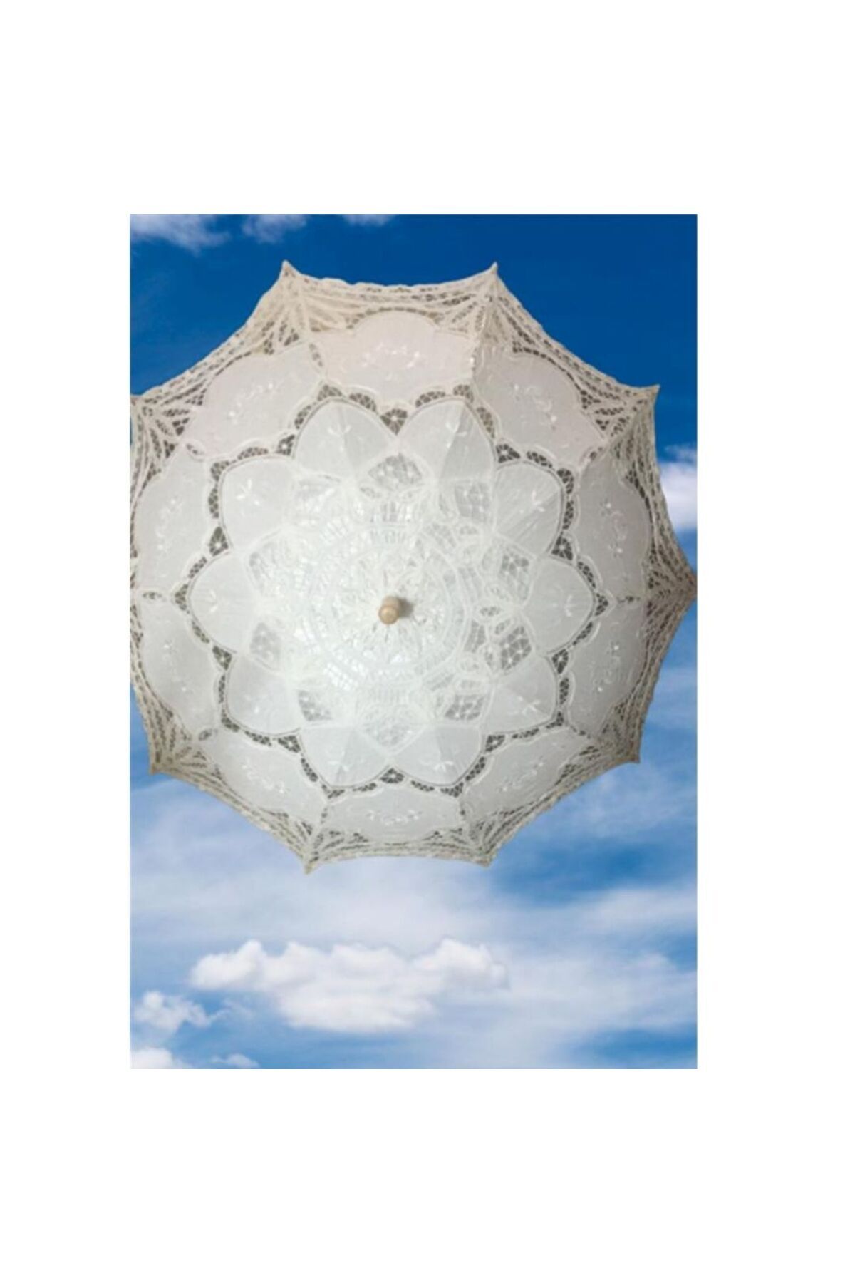 Beyaz Dantelli Şemsiye Handmade Gelin,Nişan,Düğün,Organizasyon İçin Mükemmel Ahşap Sap Nostaljik