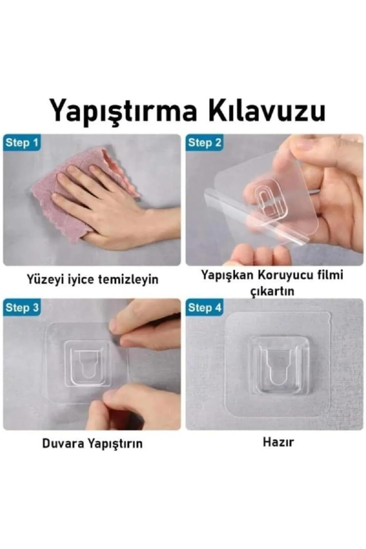 2 çift-Çift Taraflı Yapışkanlı Geçmeli Klips – Şeffaf Duvar Askısı, Delik Yok Vida Yok Duvar Kancası