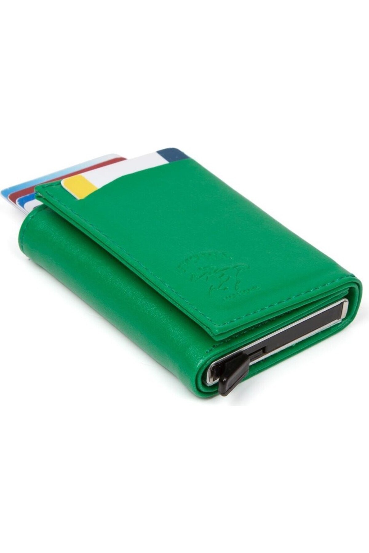Kadın Rfıd Otomatik Çekim Koruyucu Mekanizmalı Kağıt Para Bölmeli Hediyelik Kartlık Cüzdan - Yeşil