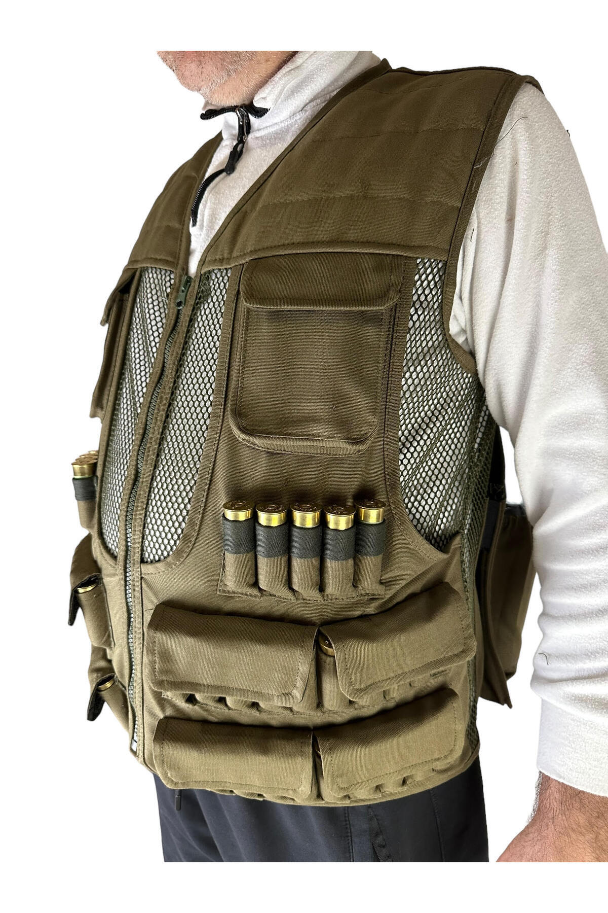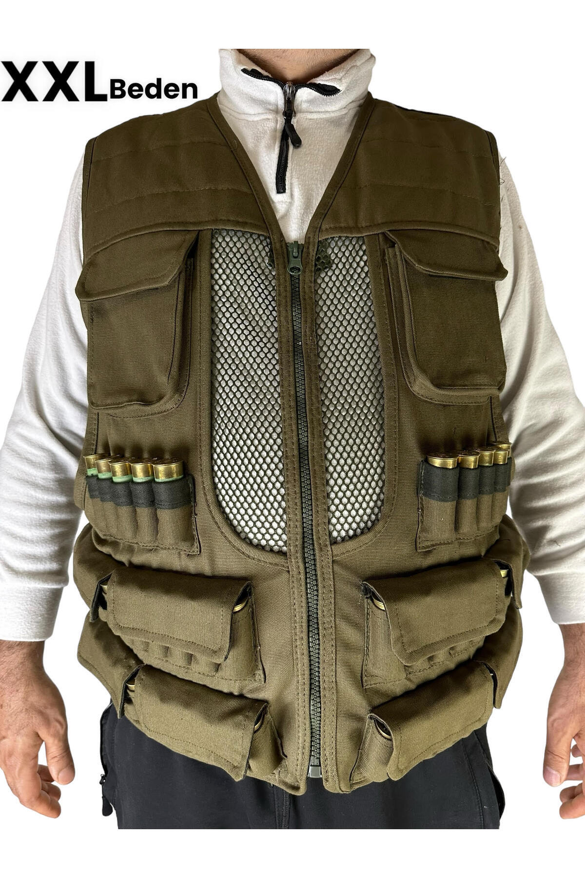 M Beden Fileli Avcı Yeleği - 50 Fişek Kapasiteli - Haki - 12 Kalibre