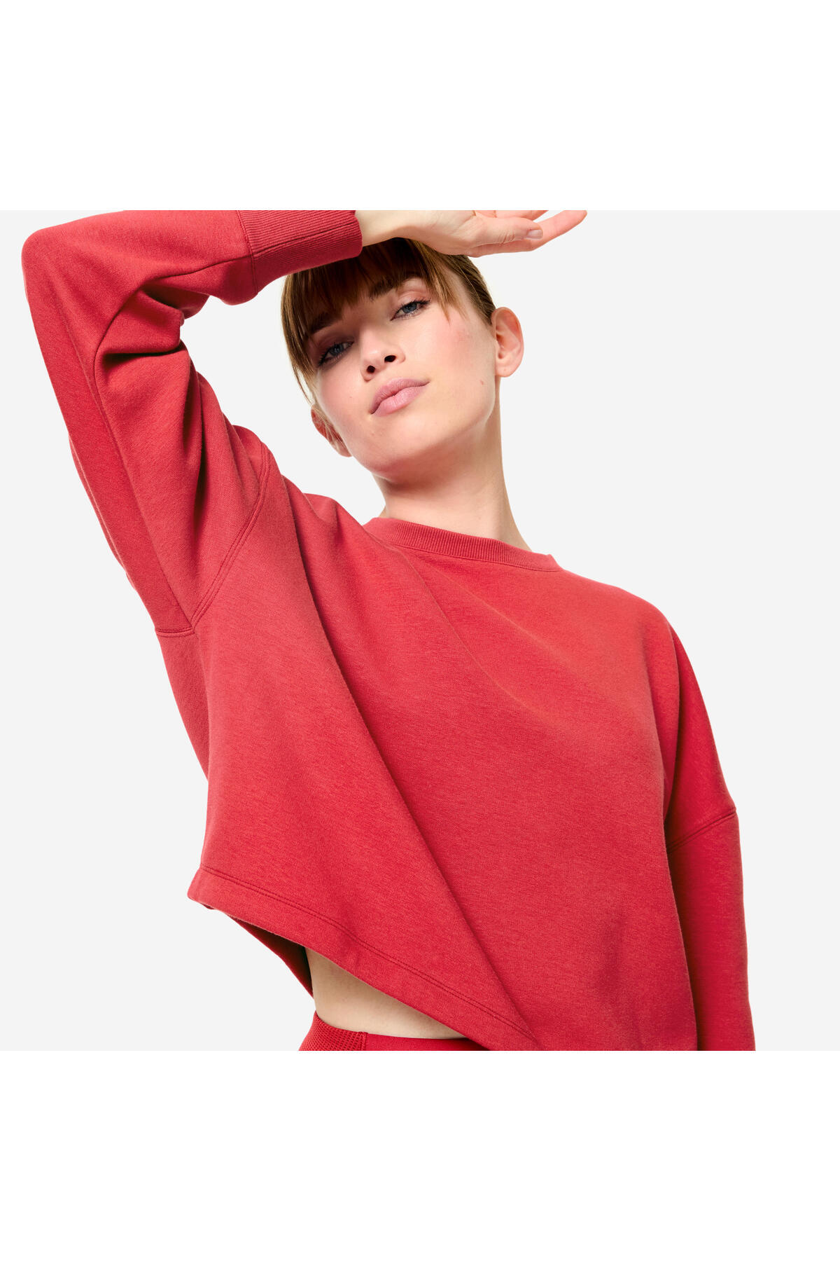 Domyos Kadın Crop Sweatshirt - Fitness - Yakut Kırmızısı