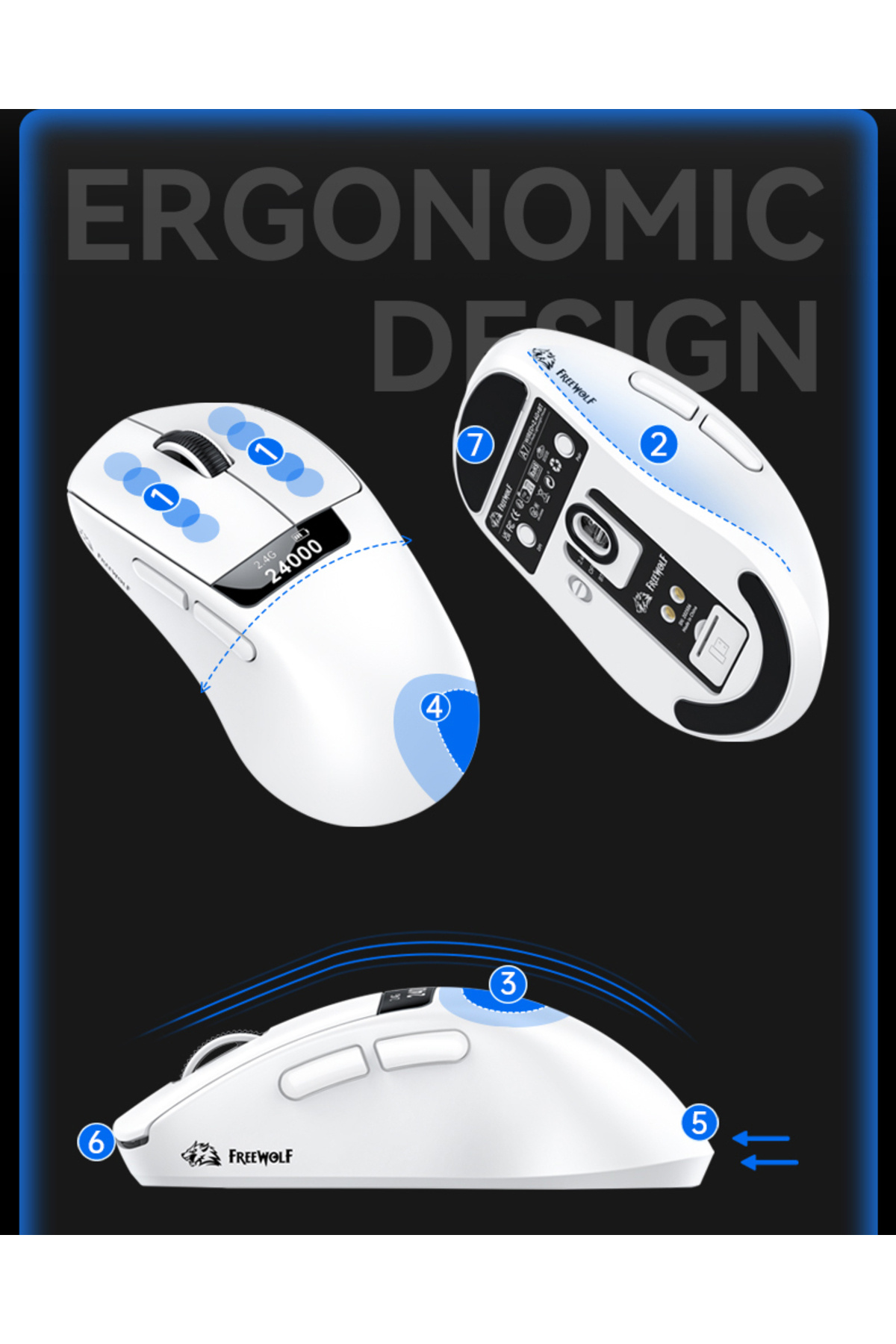 A7 Üç Mod Kablosuz Fare Hafif PAW3311 Oyun BT Ekran Fare RGB Şarj Standı Fare ile