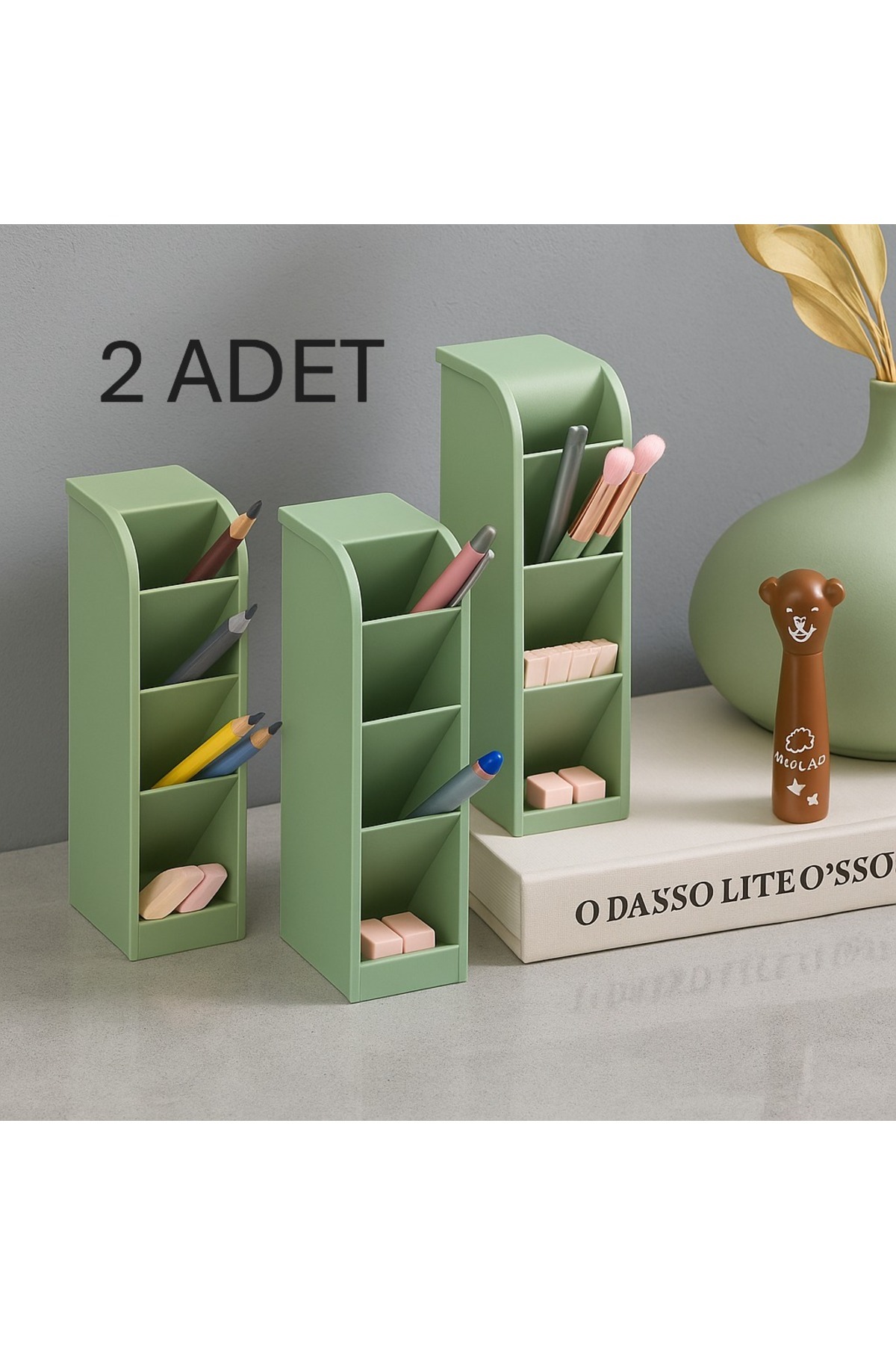 2 ADET Mellow 4 Bölmeli Çok Amaçlı Masa Üstü Düzenleyici Kalemlik-Takı- Makyaj-Ofis Organizeri-BEJ
