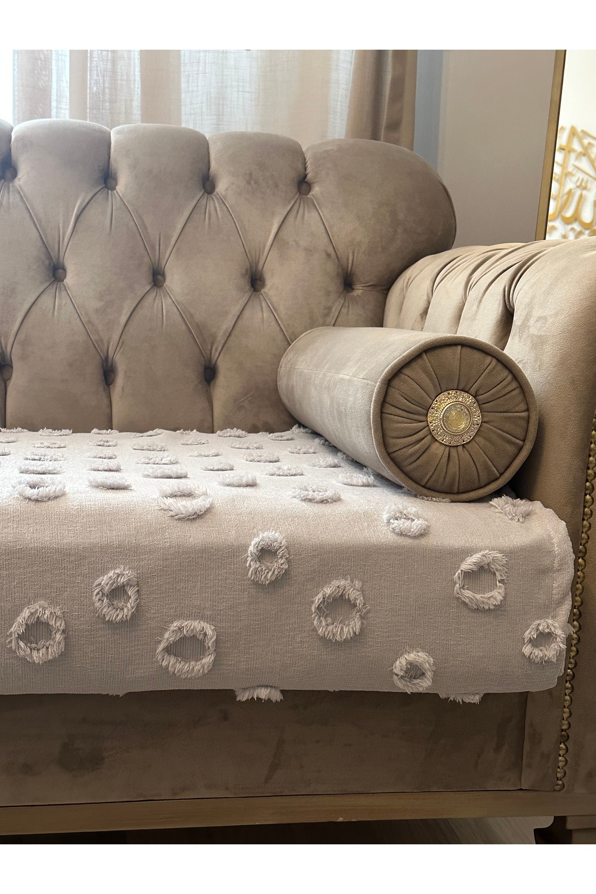 Ponpon Koltuk Örtüsü Cappuccino 100x240