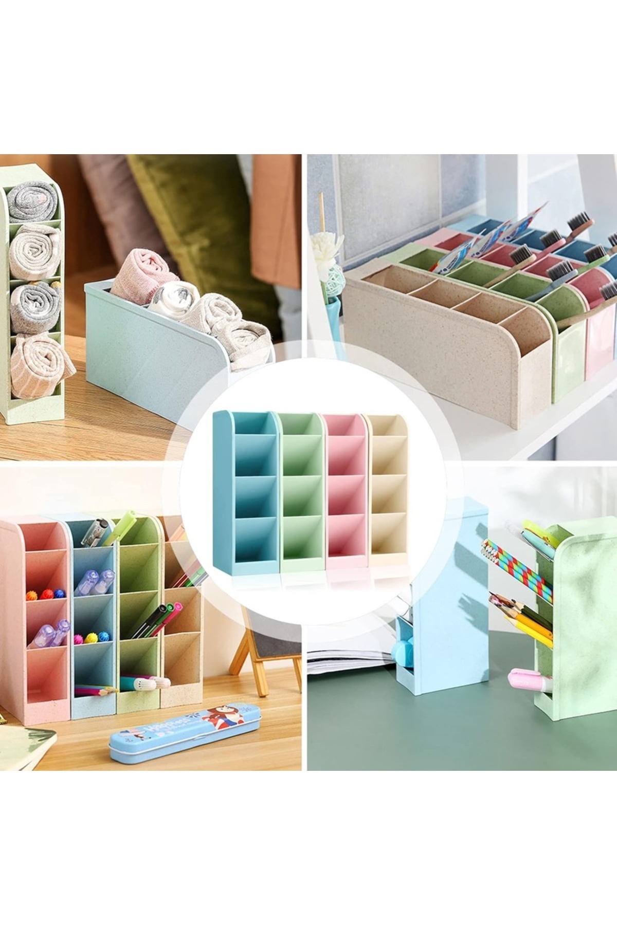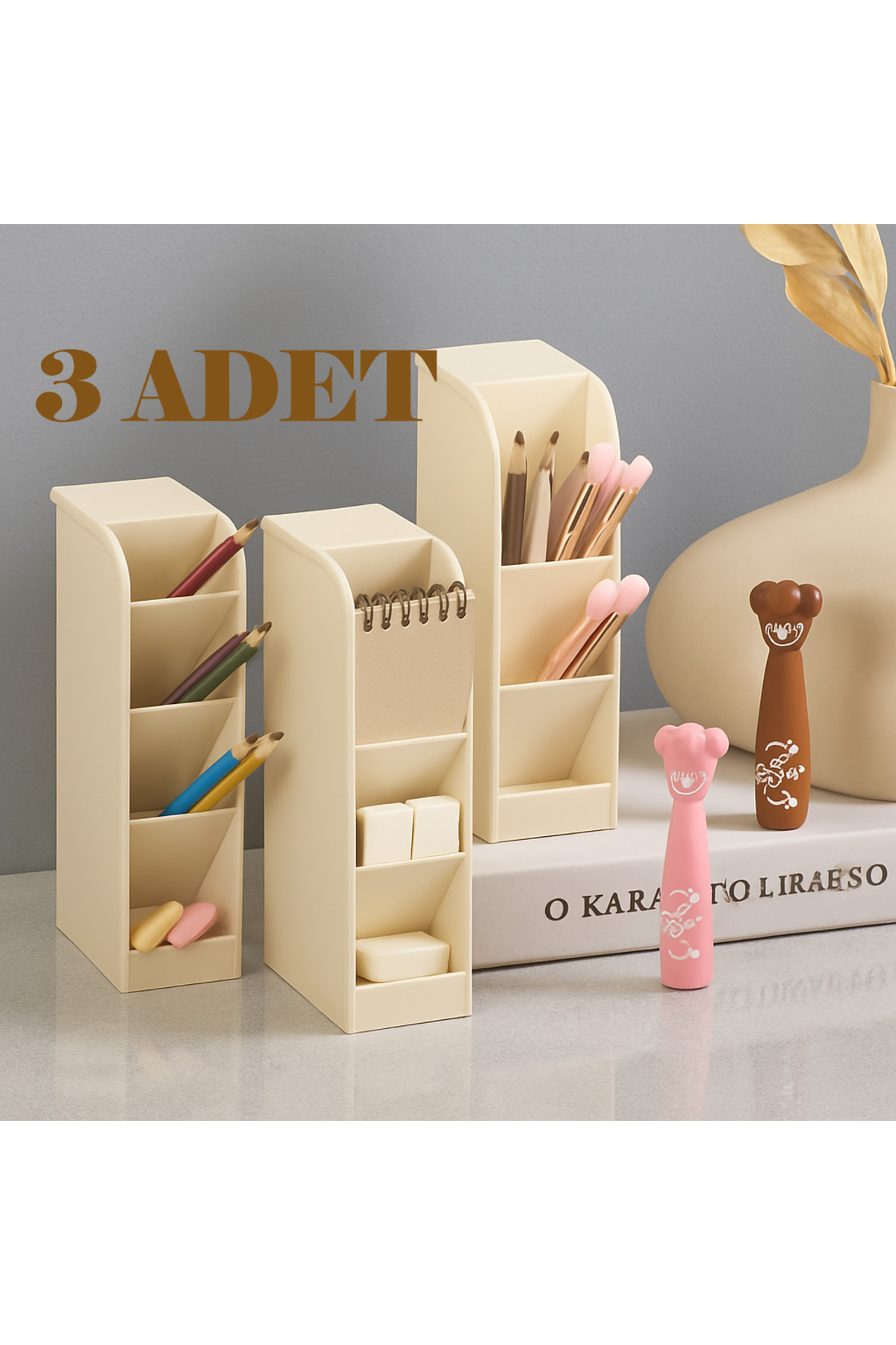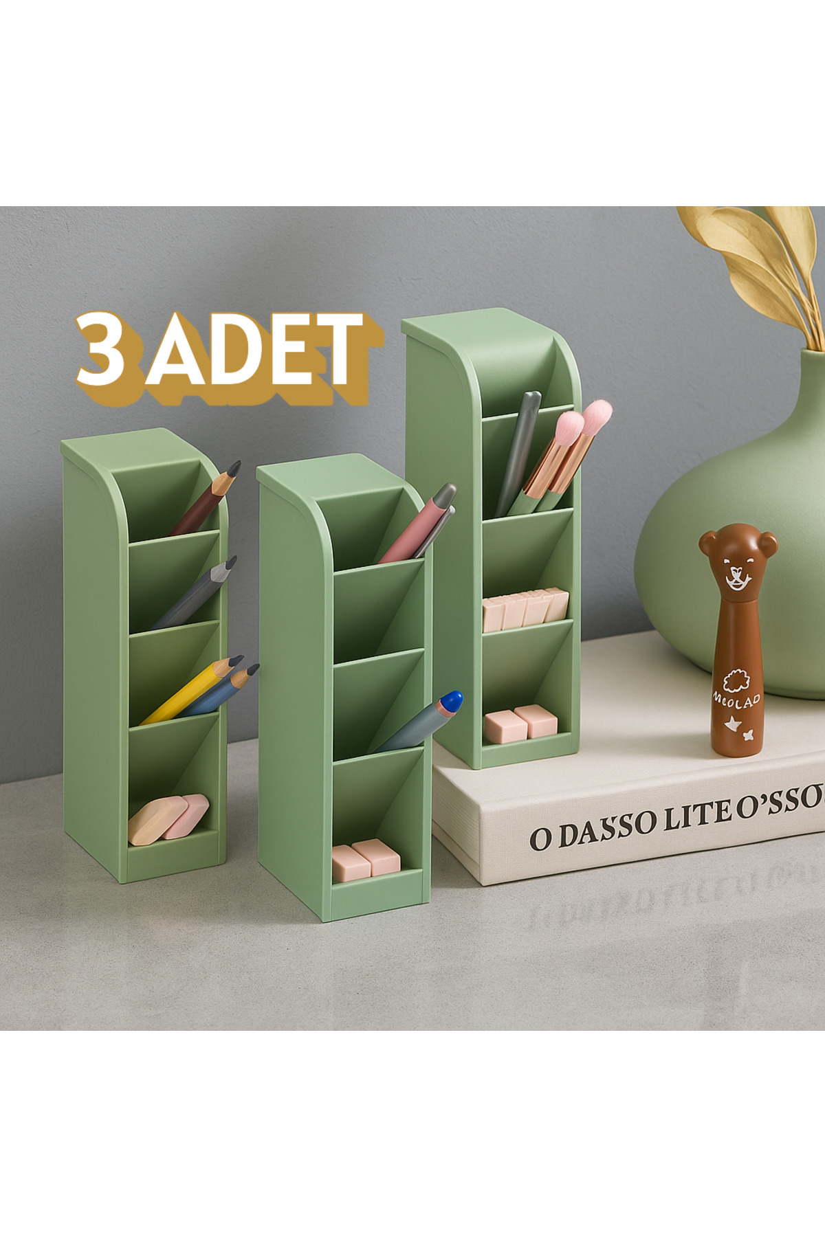 3 ADET Mellow 4 Bölmeli Çok Amaçlı Masa Üstü Düzenleyici Kalemlik-Takı- Makyaj-Ofis Organizeri-YEŞİL