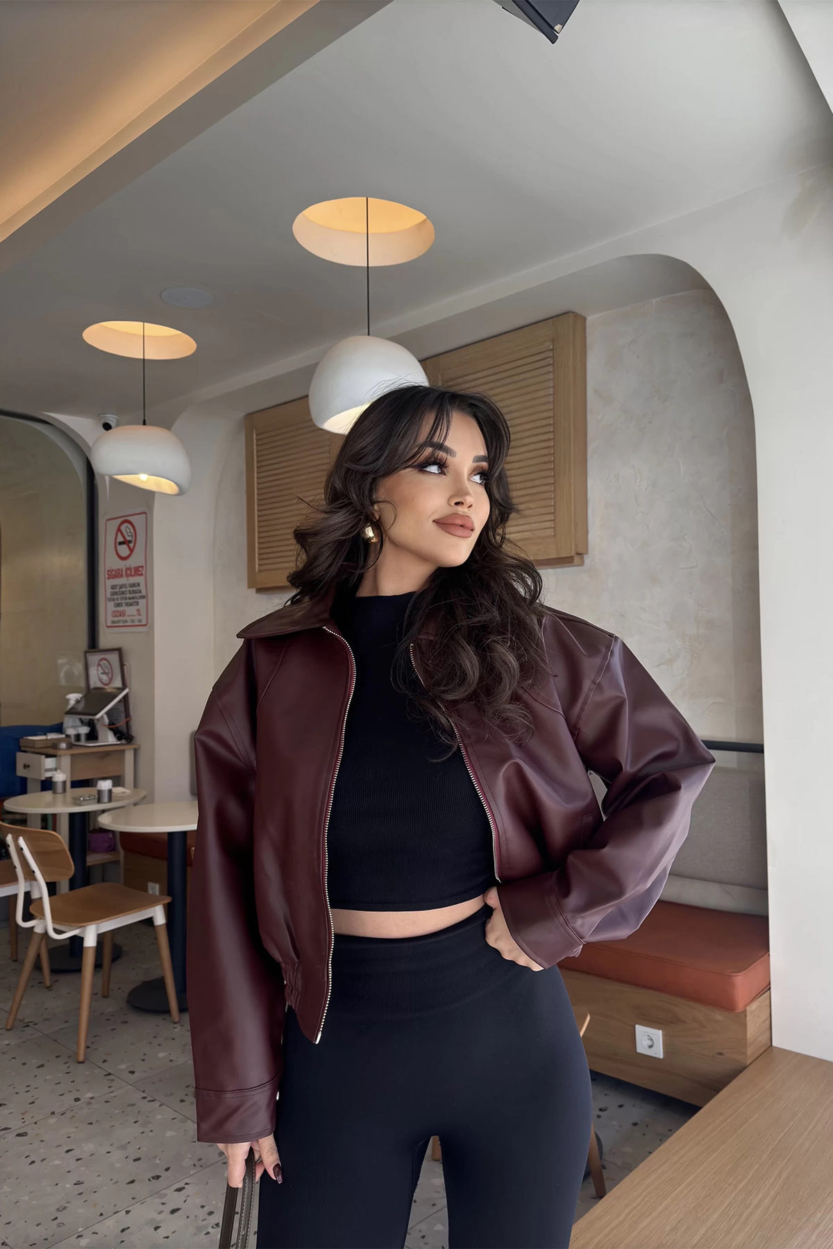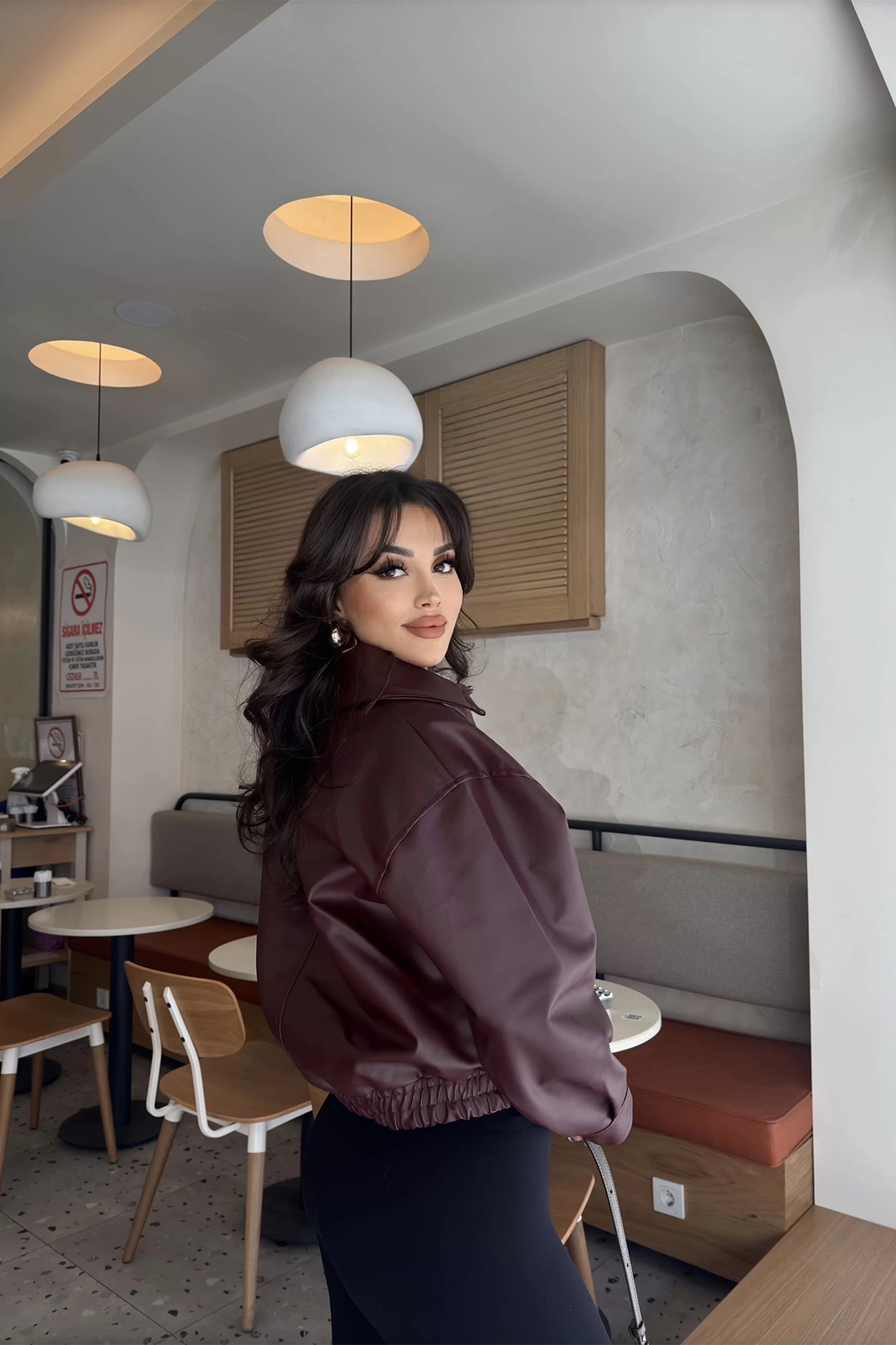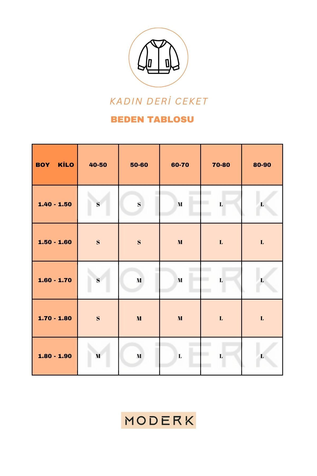- Modelin Ölçüleri: Bel: 61 cm Göğüs: 82 cm Basen: 91 cm Boy: 170 cm Kilo: 54 kg Modelin Giydiği Beden S Beden -Modern ve şık tasarımıyla dikkat çeken deri ceket, günlük kullanım için idealdir.