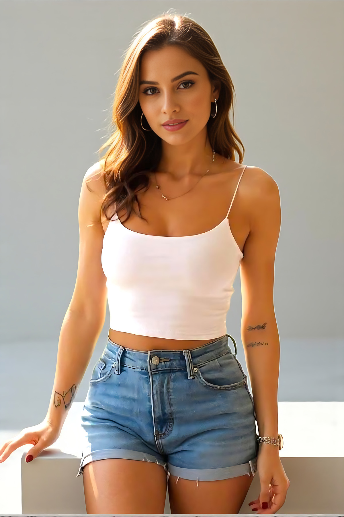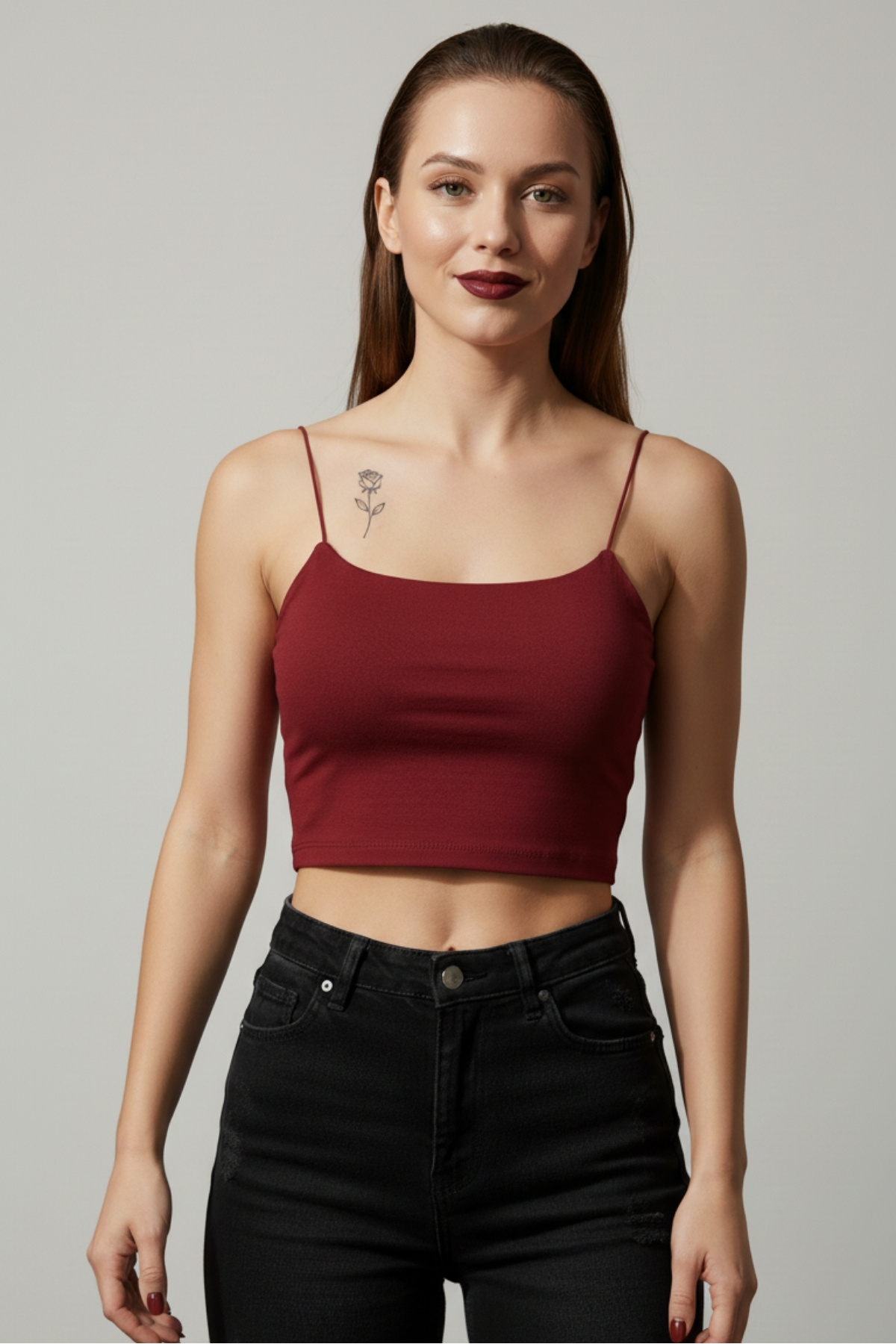 - Askılı crop kesimi ile yaz aylarında serinlik ve hafiflik hissi verir.