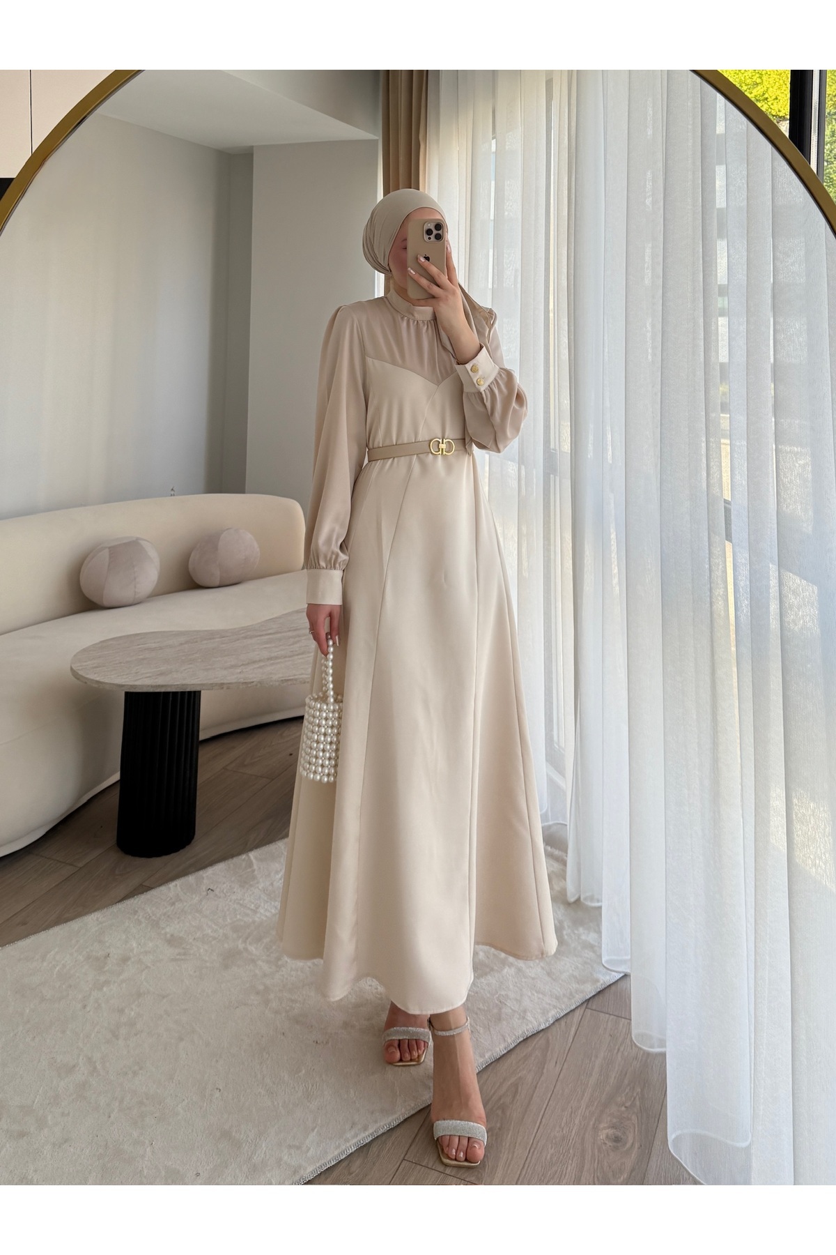 • Saten Detaylı kemerli elbise