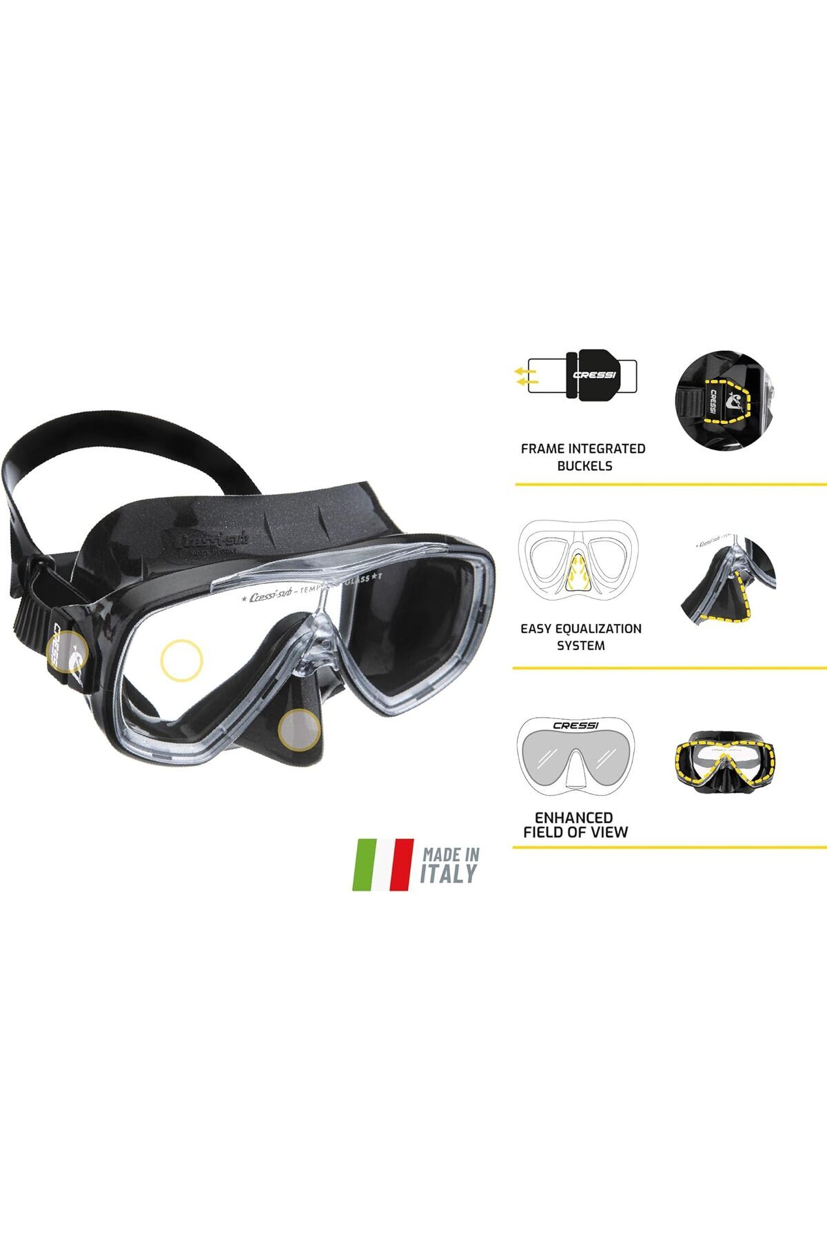 Bu ürün hakkındaŞnorkelle yüzme ve tüplü dalış için tasarlanmıştırBir çok yüz şekline mükemmel uyum sağlarGörüş açısını kısıtlamayan ortalama iç hacimKendine özgü çerçeve tasarımıTekparça temperli cam