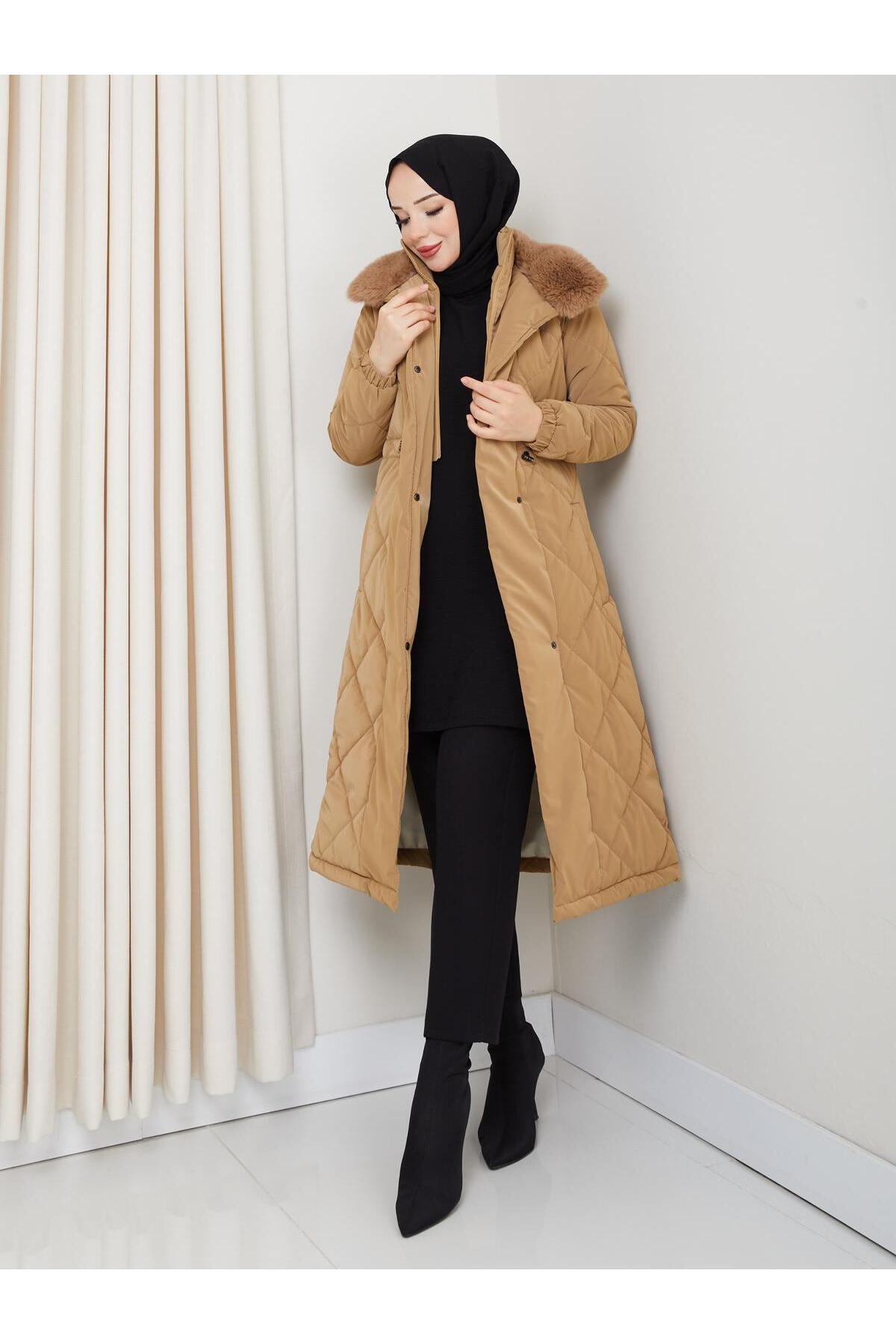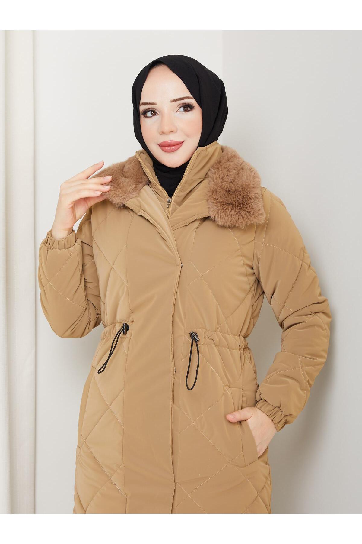 KADIN TAM DOLGULU YAKASI KÜRKLÜ GENÇ SPOR NOVA KUMAŞ TESETTÜR MONT 0190