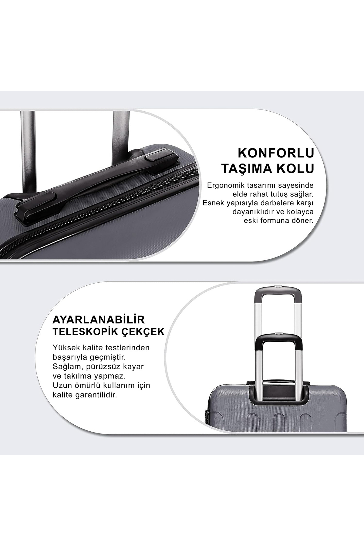 ✅ 10.000 Çekçek Testi – Güvenli Trolley Mekanizması: Çekçek sistemi 10.000 kez aç-kapa testine tabi tutulmuş, sorunsuz kullanım garantisi sunar.