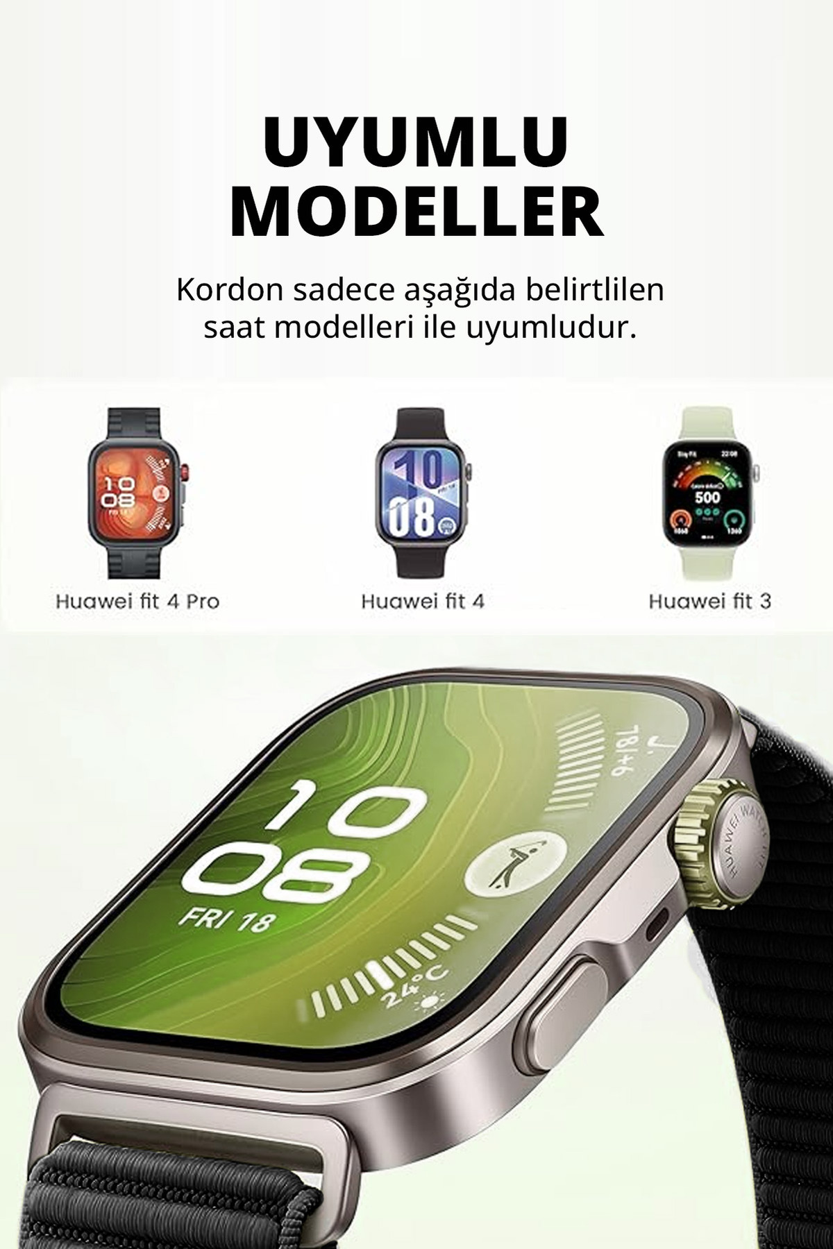 Huawei Watch Fit 4 / Fit 4 Pro / Fit 3 Uyumlu Hasır Örgü Dokuma Cırt Cırtlı Tasarım Spor Kordon