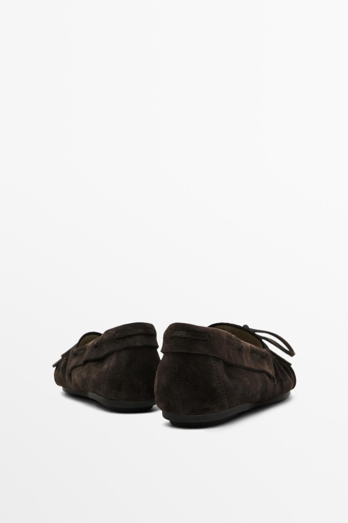 Büzgülü fiyonklu yırtmaçlı deri kalın süet makosen