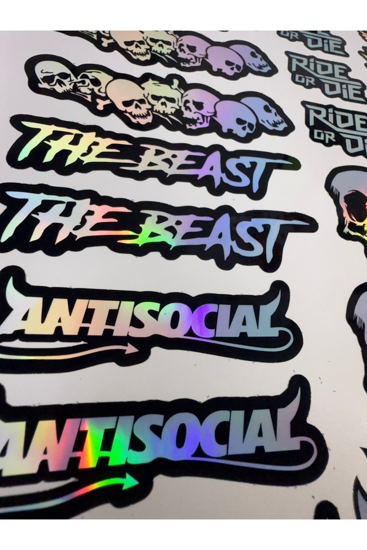 20 Parça Bisiklet Sticker Seti – Ride or Die, The Beast & Antisocial ( HOLOGRAM FULL )