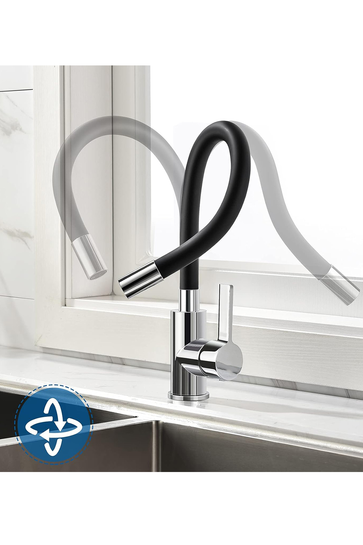 Siyah Esnek Bükülebilir Delta Mutfak Eviye Bataryası Aç Kapa Musluk Batarya