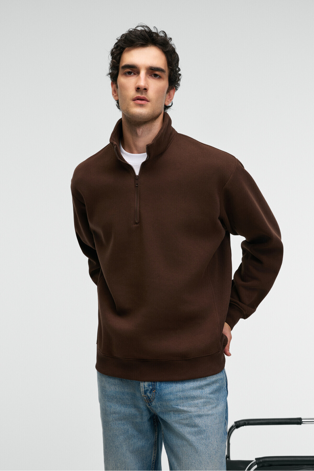 BAXTER Erkek Dik Yakalı Fermuarlı Relaxed Kahverengi Sweatshirt