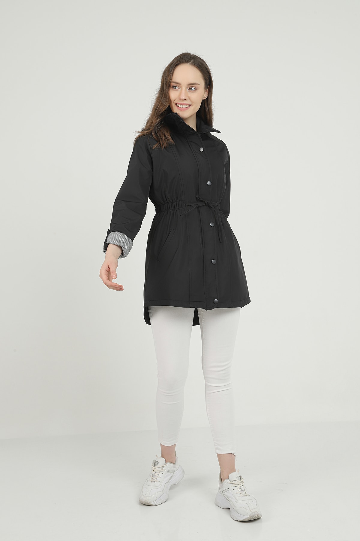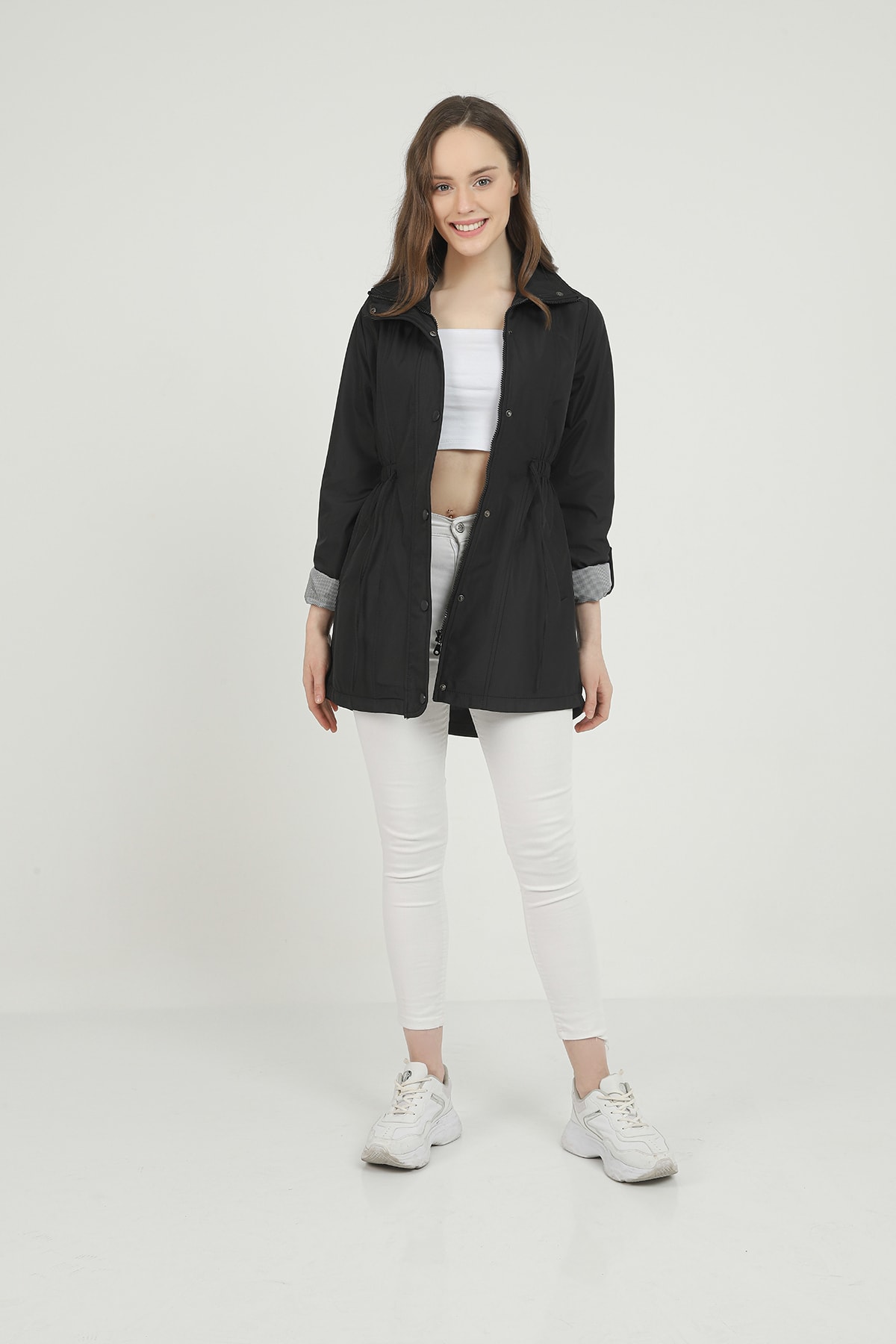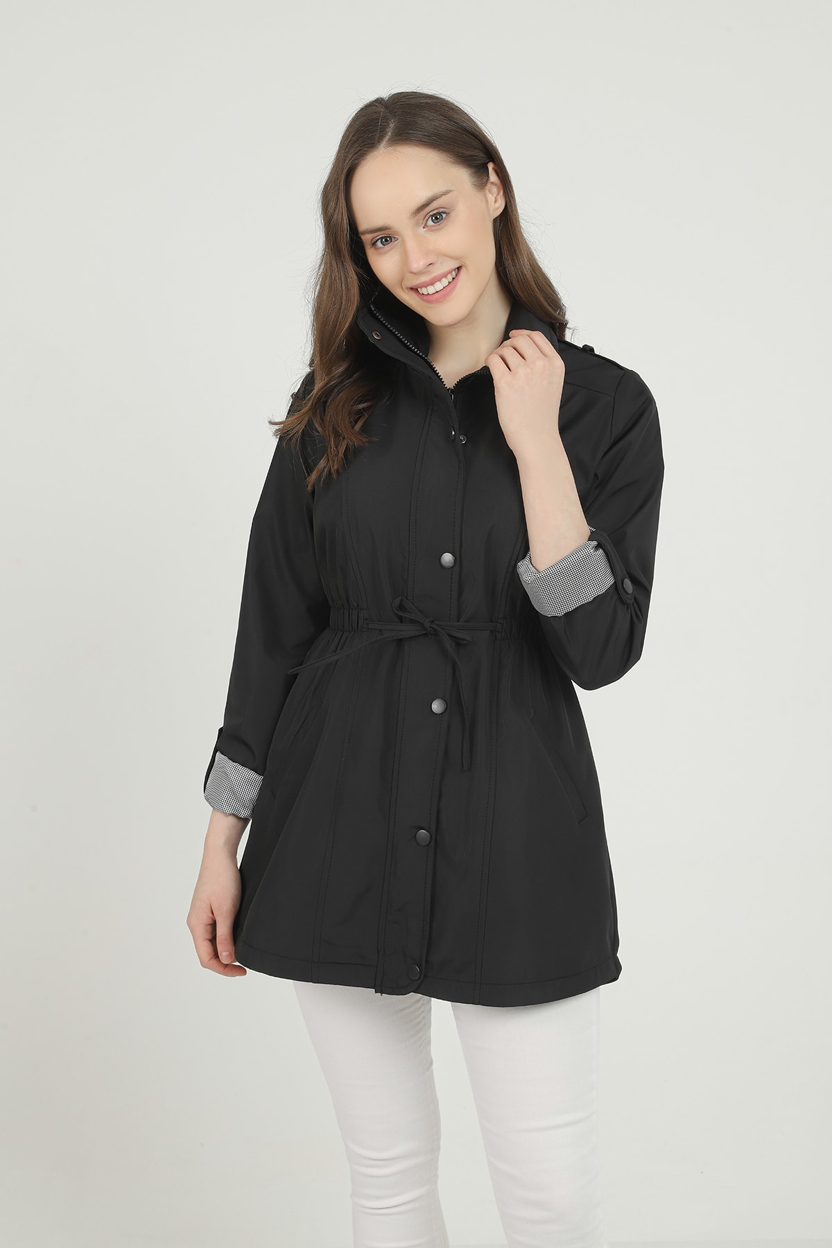 Gömlek yakası detayı ile klasik trençkot görünümünü modernize eder