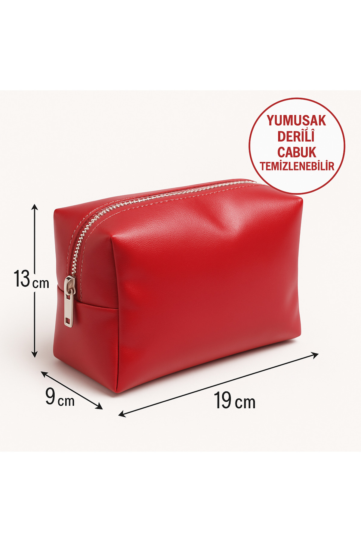 - Canlı kırmızı rengiyle dikkat çekici bir stil oluşturur ve makyaj çantanızı öne çıkarır.