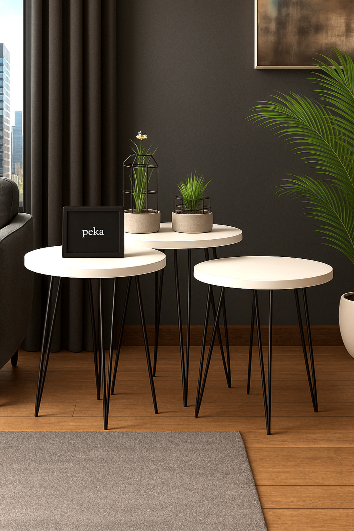 Zigon Sehpa Metal Ayaklı 3’lü Set Yuvarlak Lüx