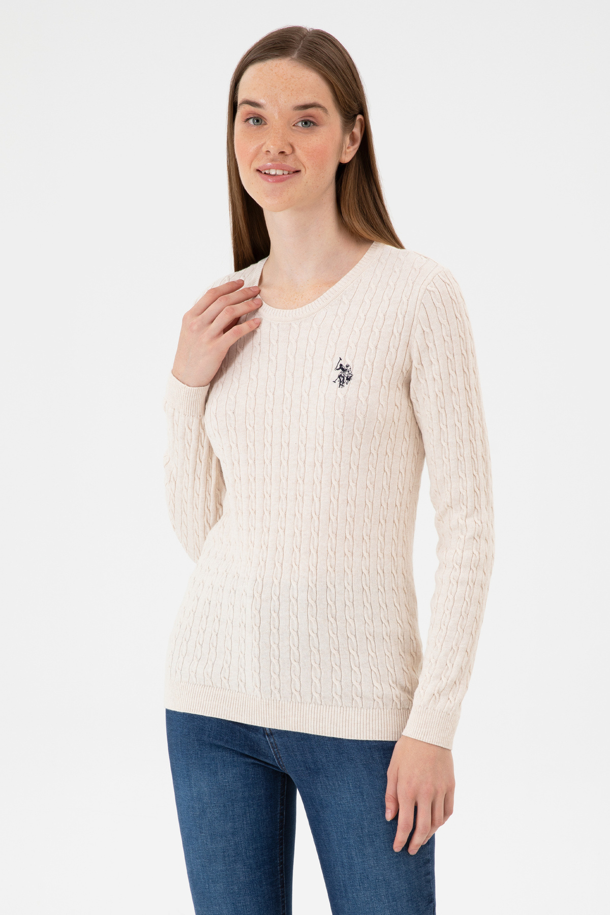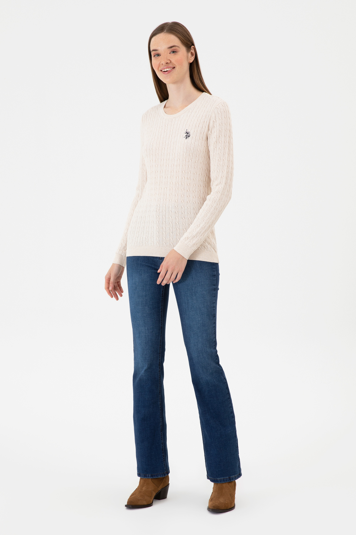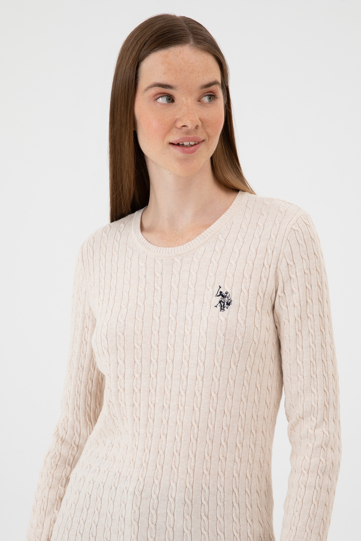 Kadın Krem Melanj Bisiklet Yaka Basic Kazak 50313626-VR159