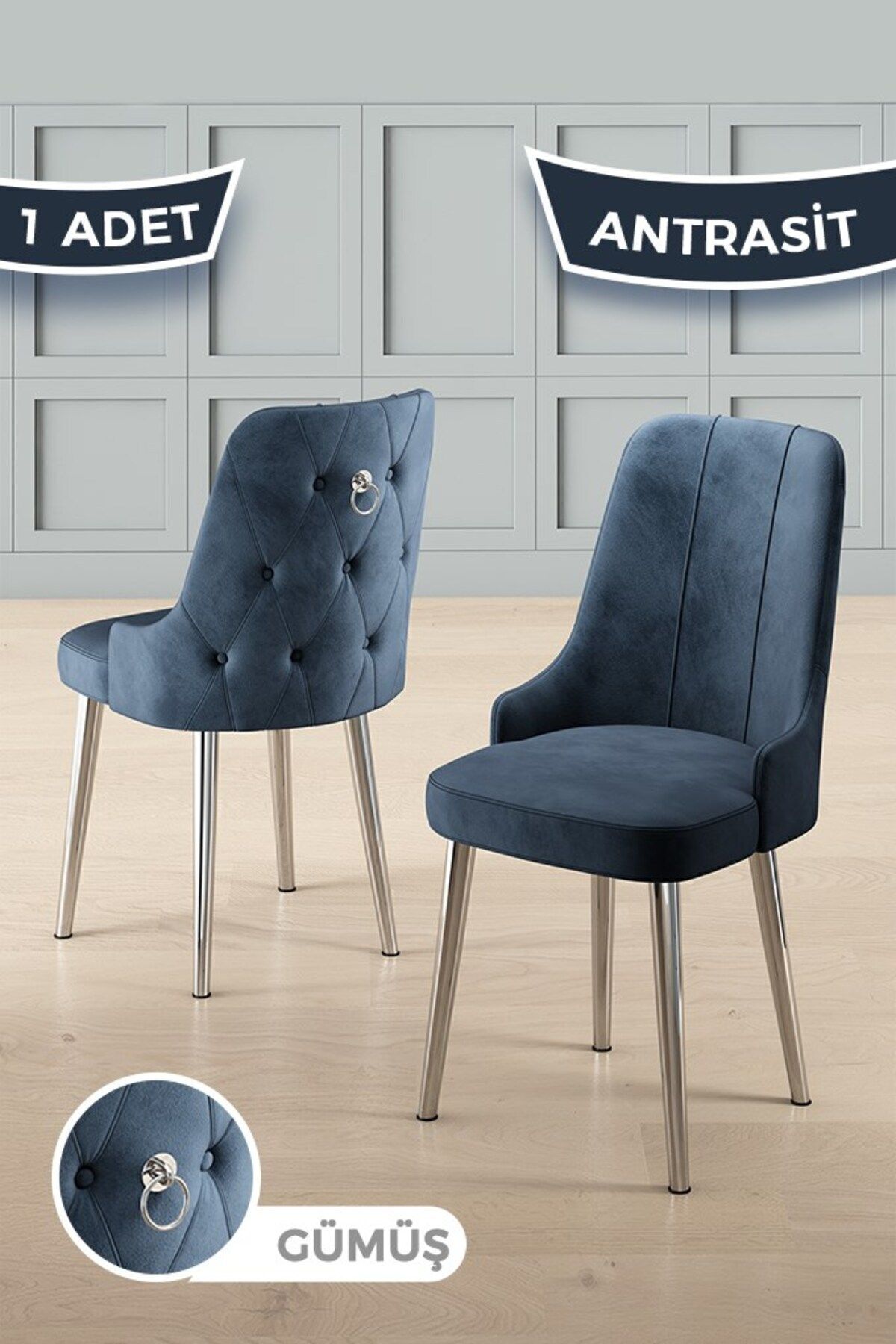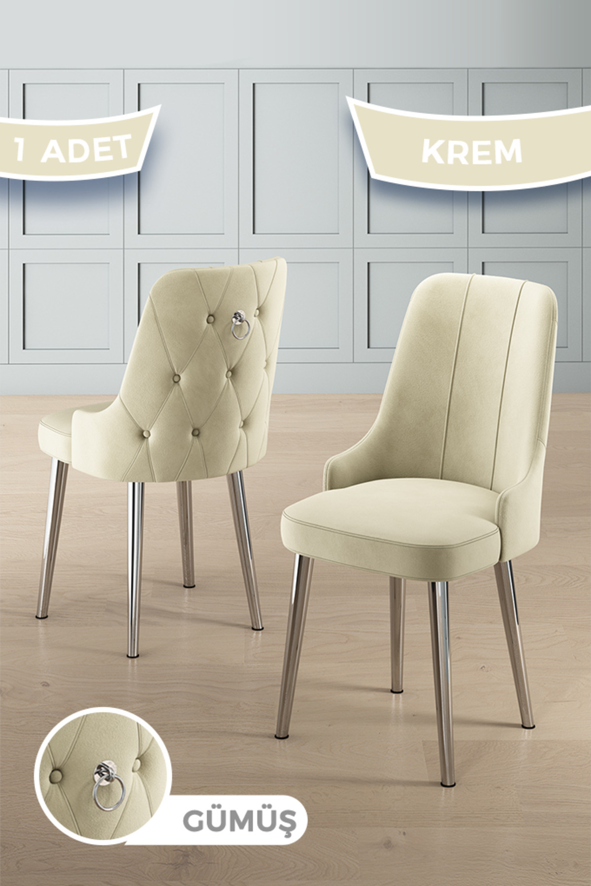 Newa Serisi 1 Adet Krem Sandalye Gümüş Kaplama Metal Ayaklı