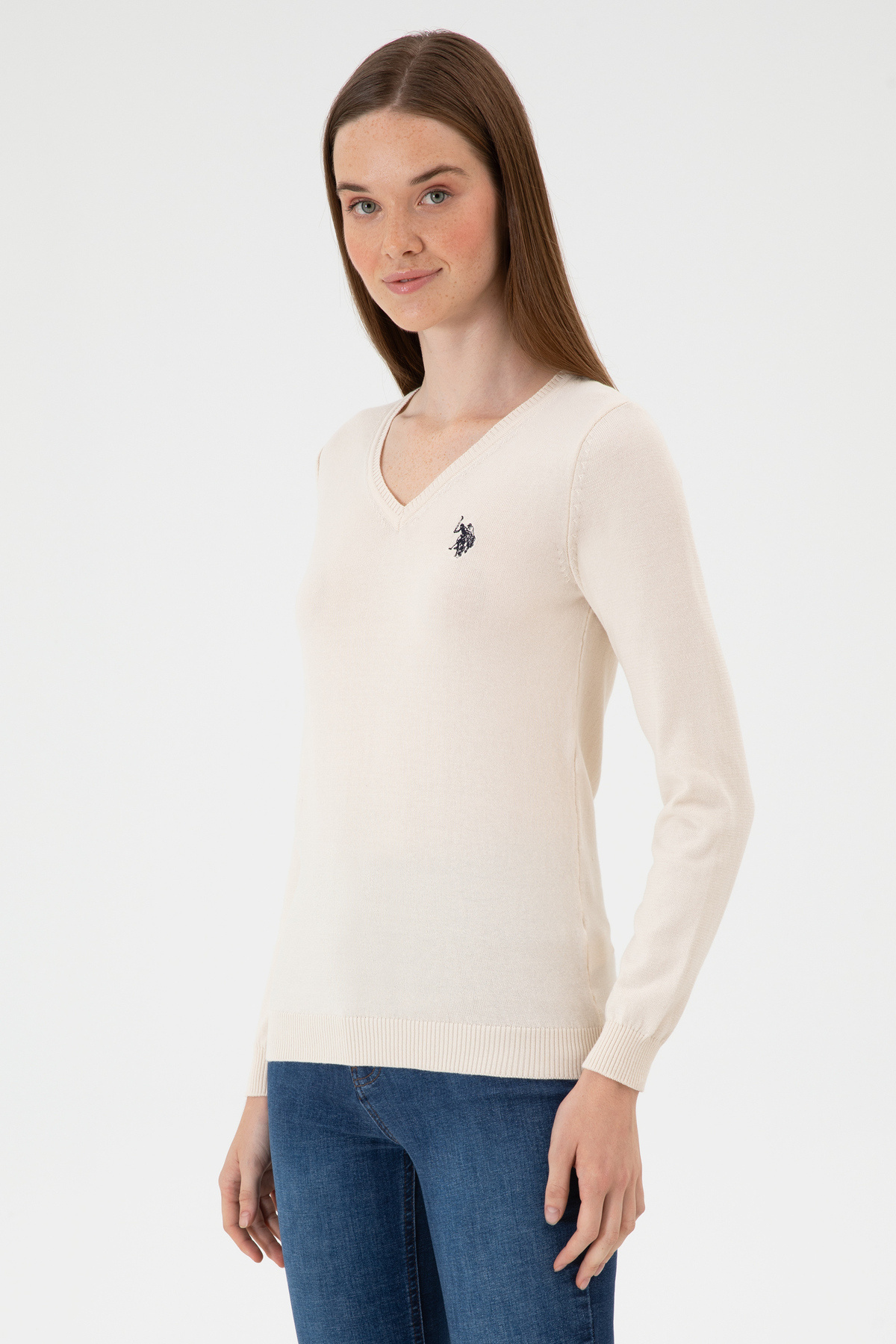 Kadın Kiremit V Yaka Basic Kazak 50313590-VR031
