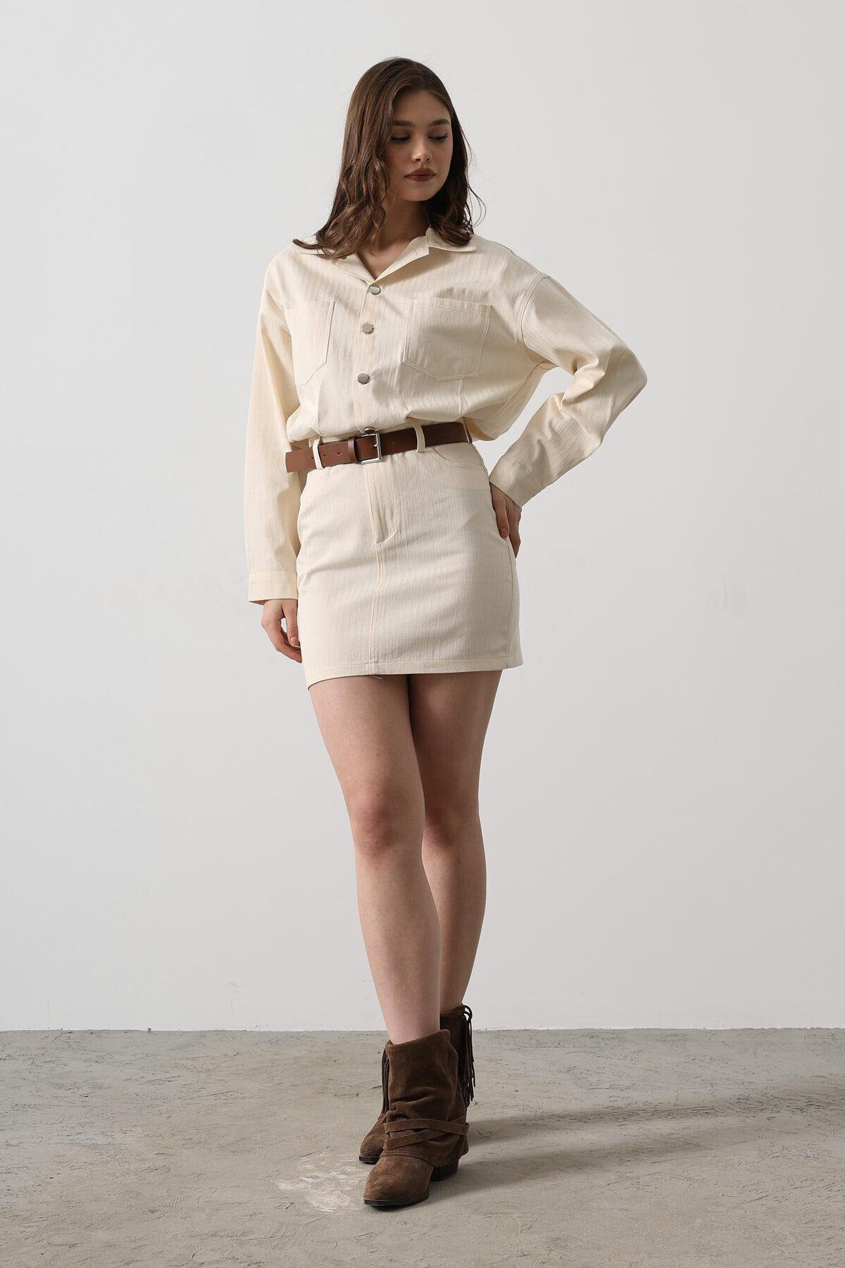 Kemer Detaylı Balıksırtı Gömlek Elbise