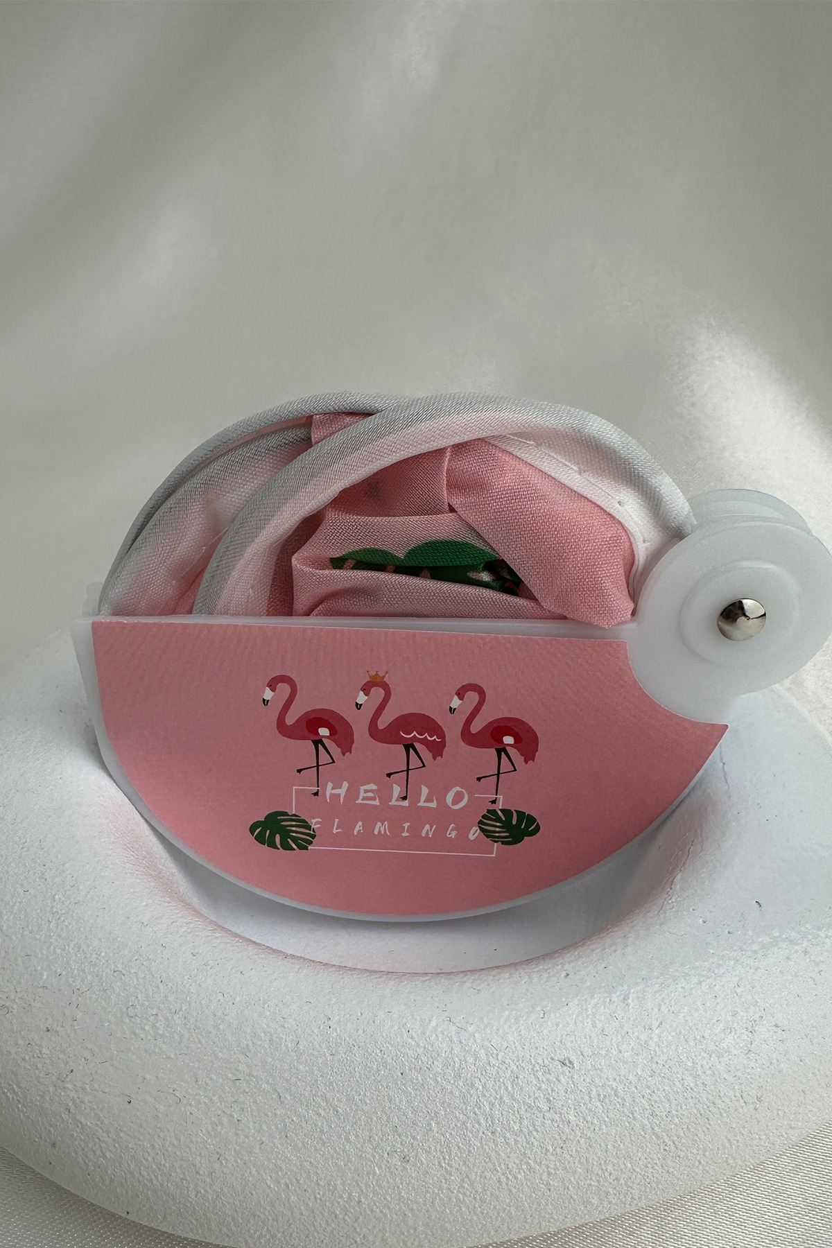 Pembe Flamingo Figürlü Aparatlı Çantalı Katlanabilir Yuvarlak Tasarım Yelpaze (21*21)