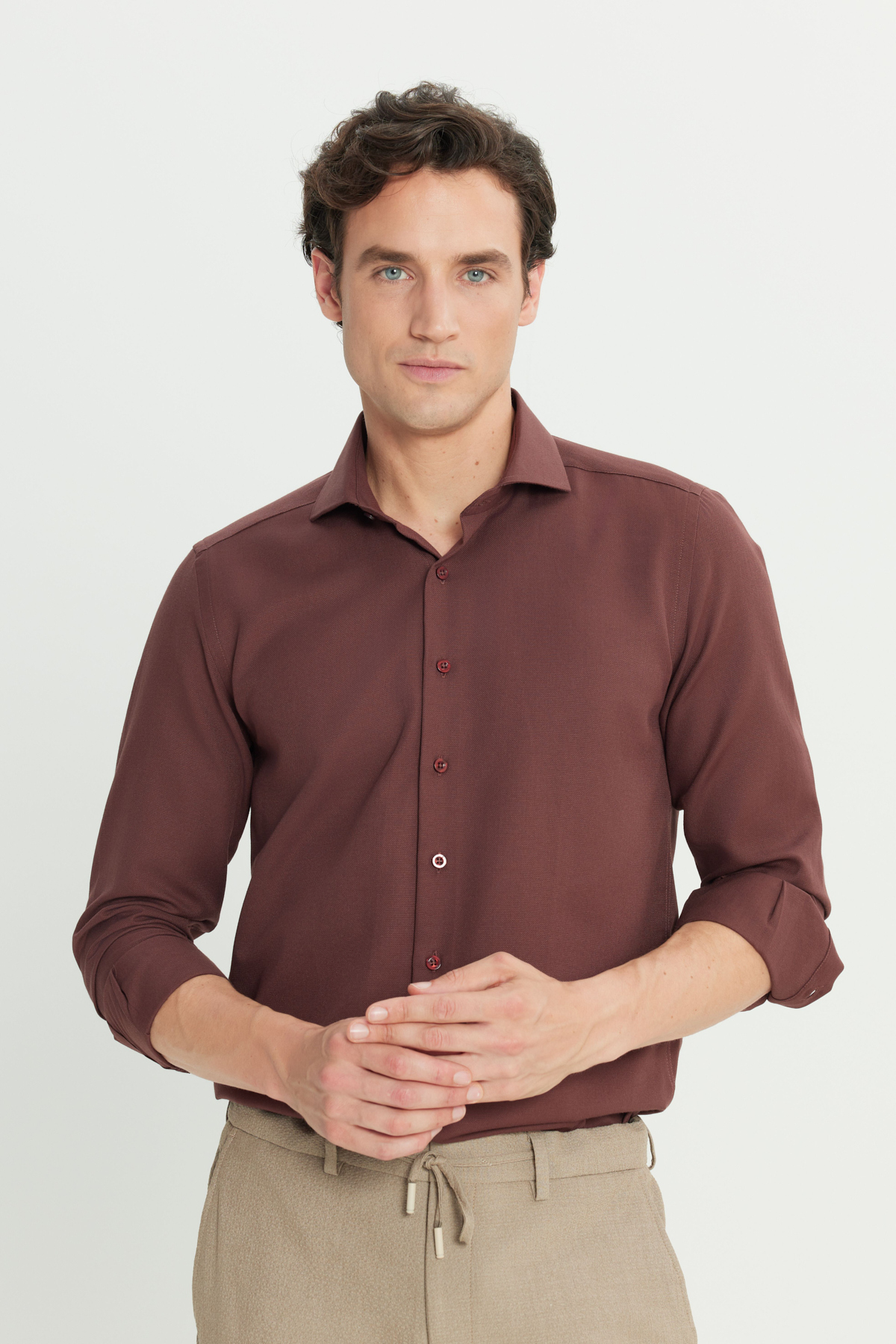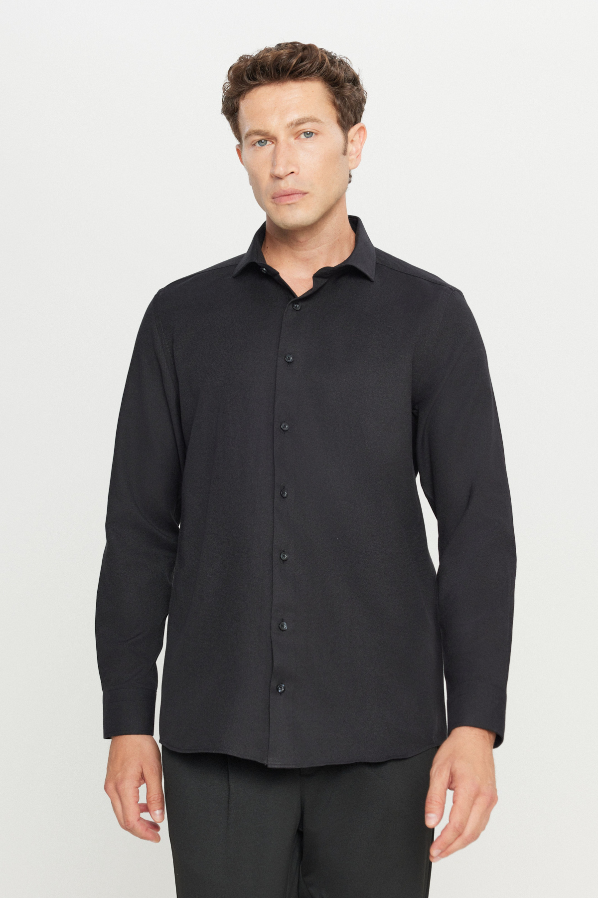 %60 Pamuk, %40 Polyester, Armürlü, Siyah, Cepsiz, Tailored Slim Fit, Küçük İtalyan Yaka, Uzun Kollu, Cepsiz, Ürün Bedeni: L, Manken Ölçüleri: Boy: 1.89cm, Kilo: 80kg, Altınyıldız Classics/ACCo Tailored Slim Fit Dar Kesim Küçük İtalyan Yaka Armürlü Oxford Gömlek.