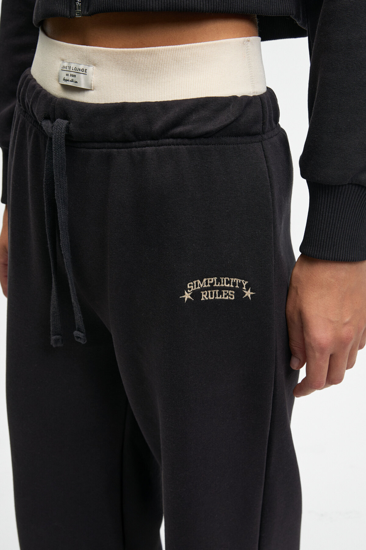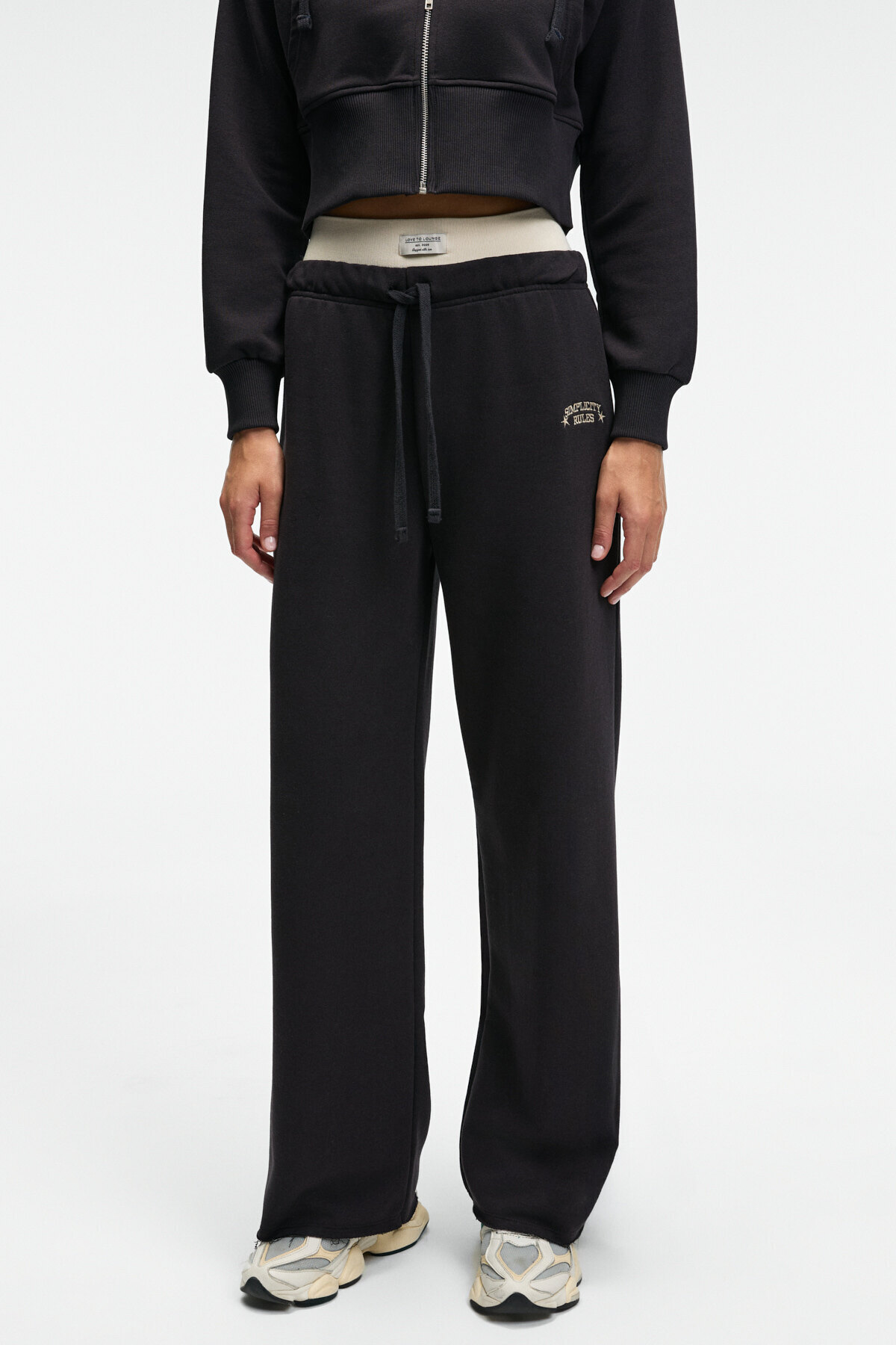 MORVELLA Kadın Nakışlı Regular Fit Antrasit Eşofman Altı