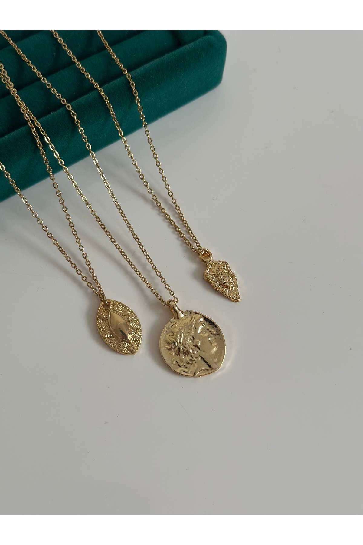 Vintage Tasarım Üçlü Çelik Kolye Seti