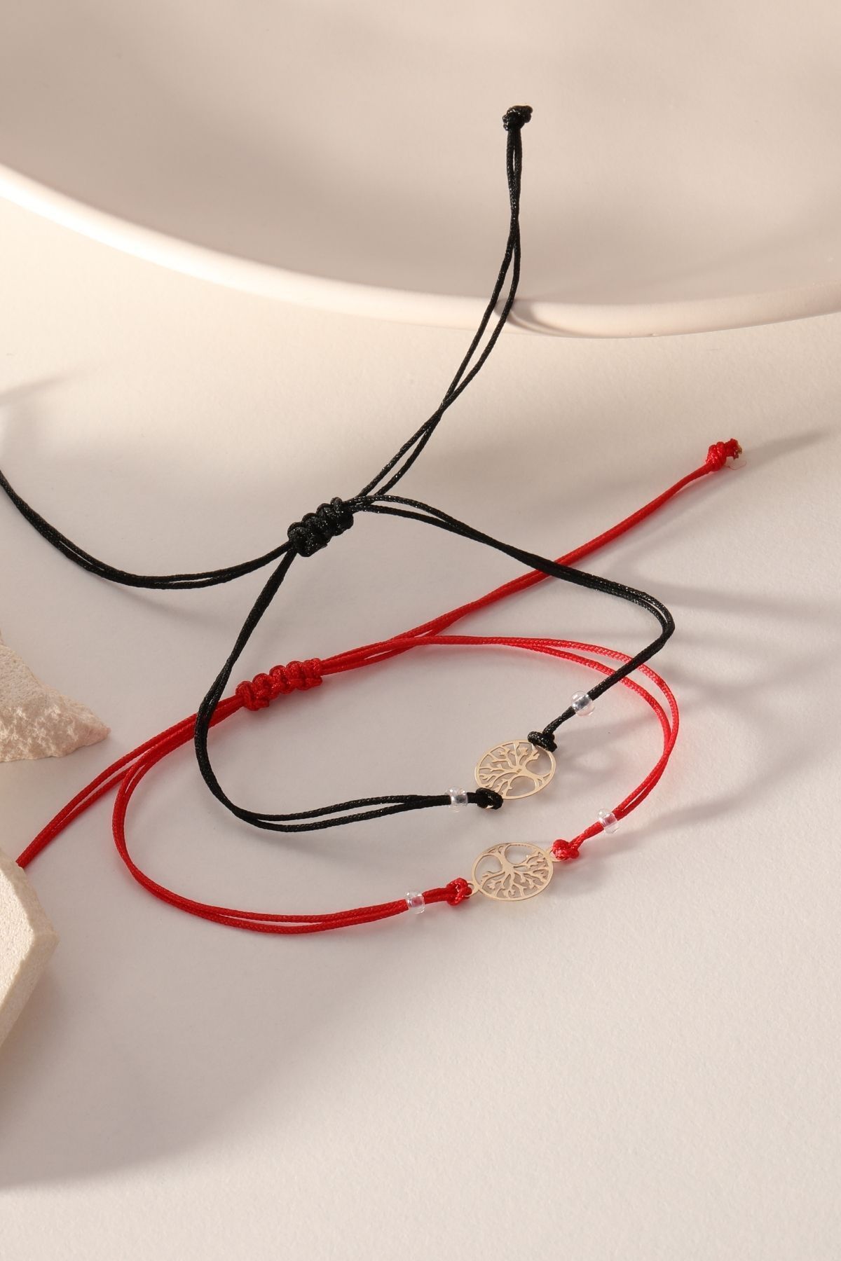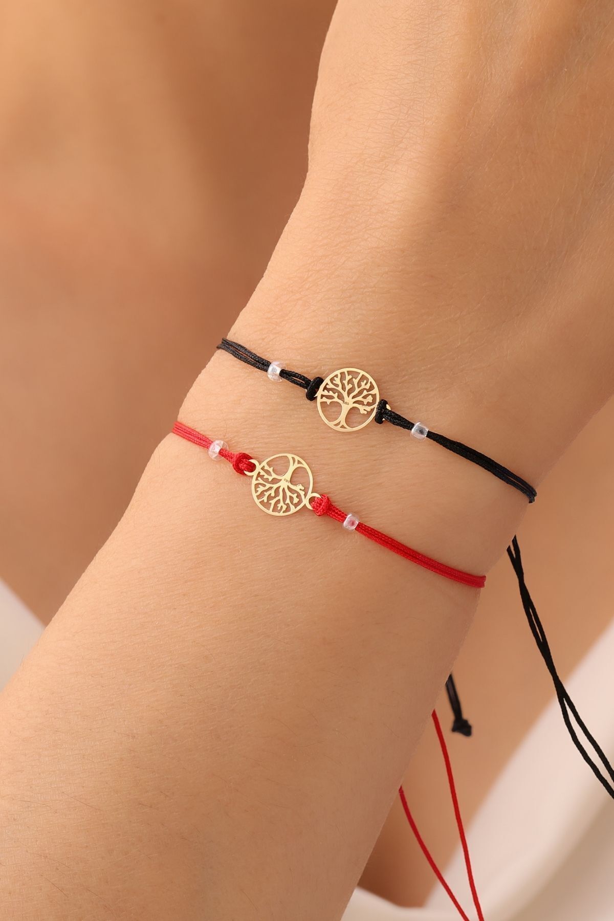 14 Ayar Altın kadın Kırmızı İpli Yaşam Ağacı Bileklik
