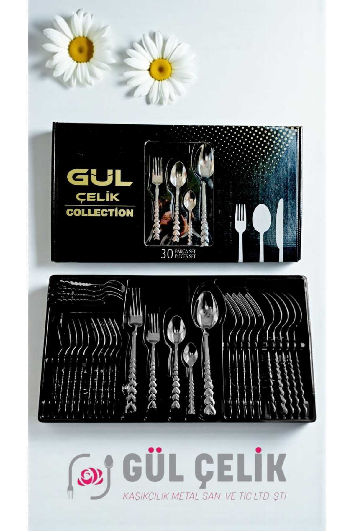30 Parça 6 Kişilik Çatal Kaşık Takımı Kalpli Model ( KUTULU )