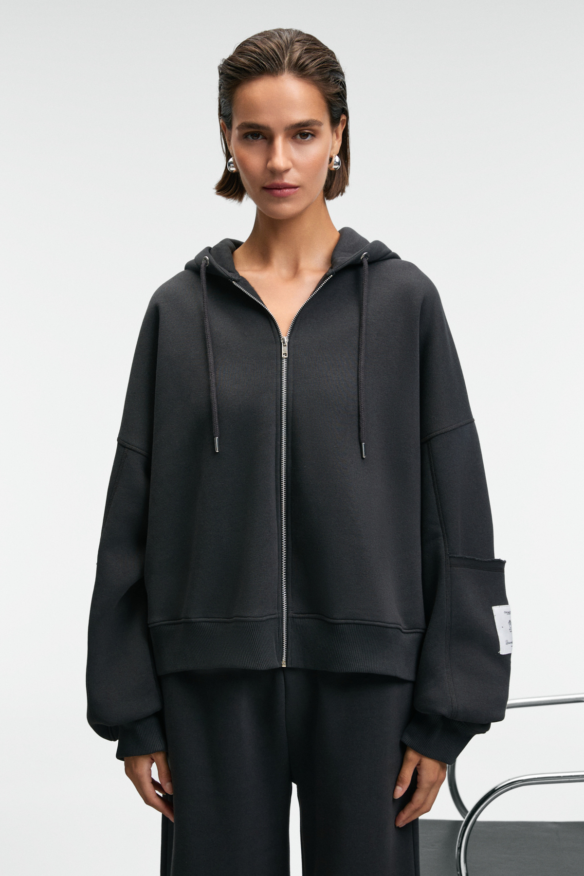 VIVIENNE Kadın Metal Fermuarlı Kapüşonlu Kolda Süs Etiket Ve Cep Detaylı Antrasit Sweatshirt