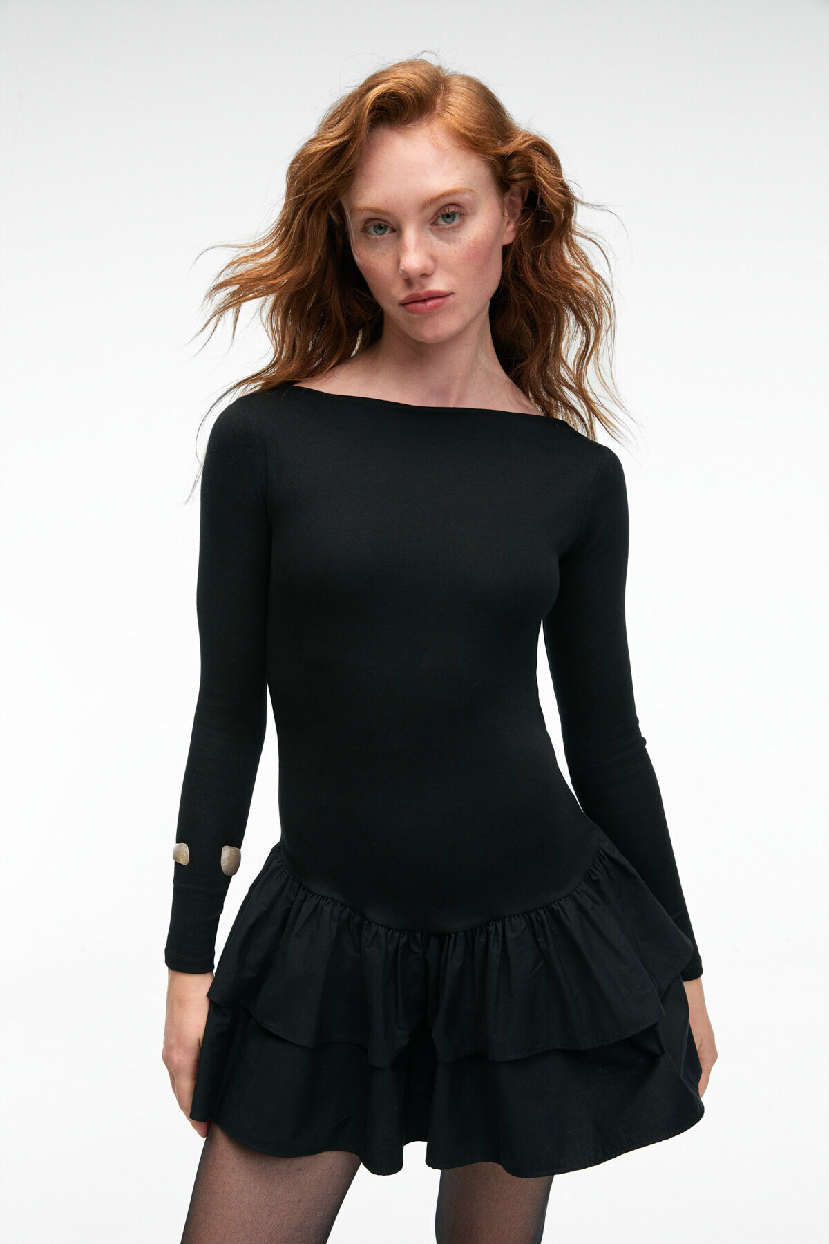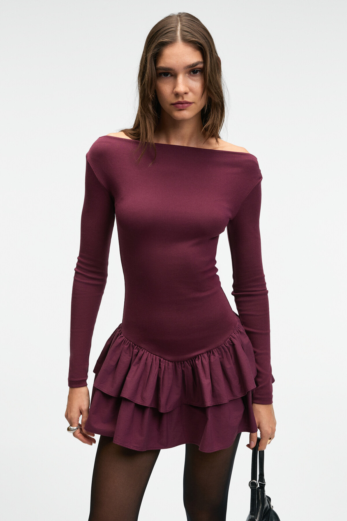 TRUSEA Kadın Üstü Esnek Eteği Dokuma Kumaşlı Regular Mini Bordo Elbise