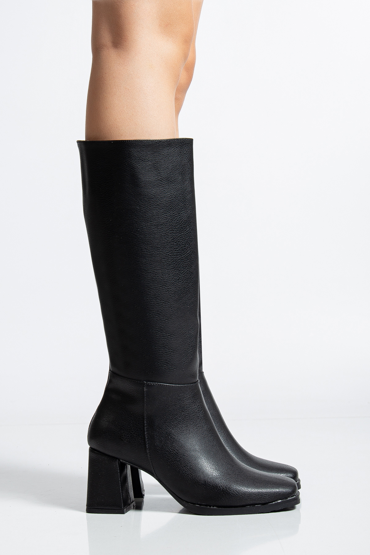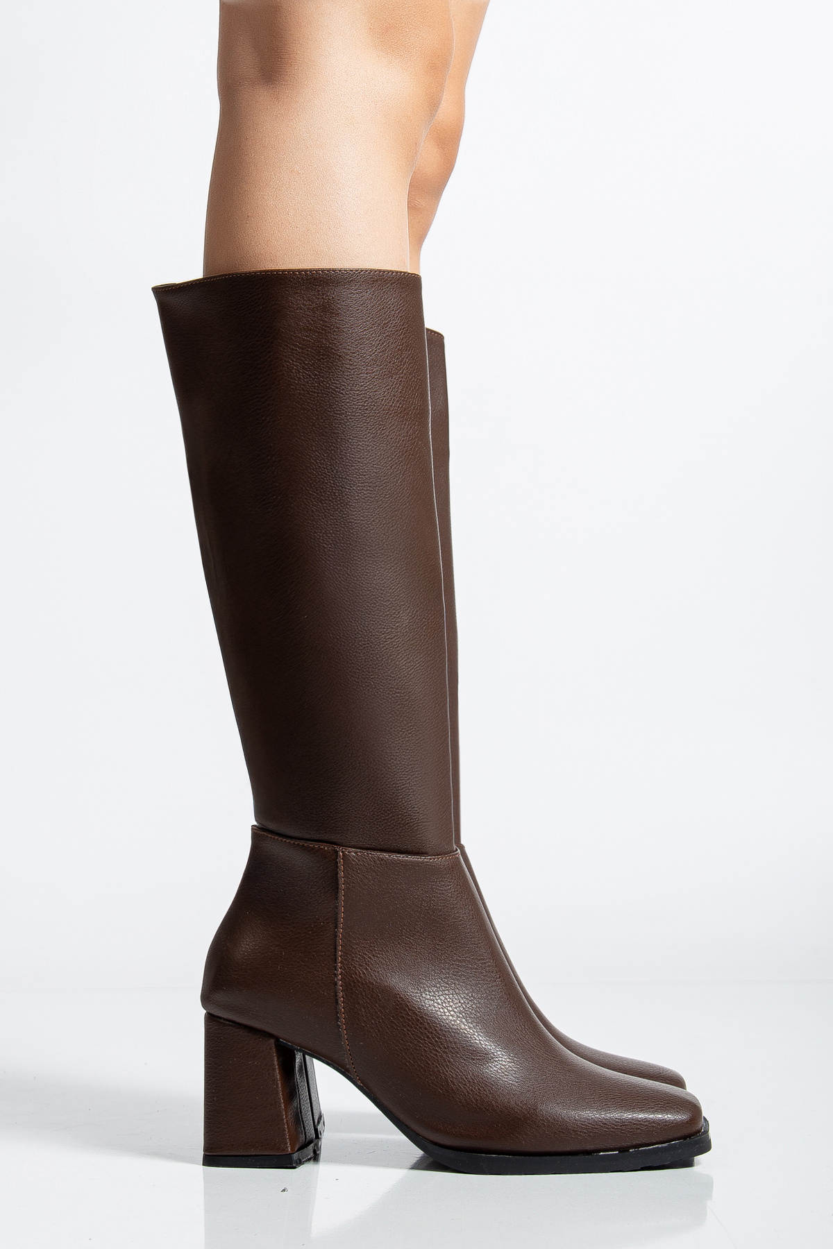 Kadın Acı Kahve Fermuarlı Diz Küt Burun Altı Boy Topuklu Çizme