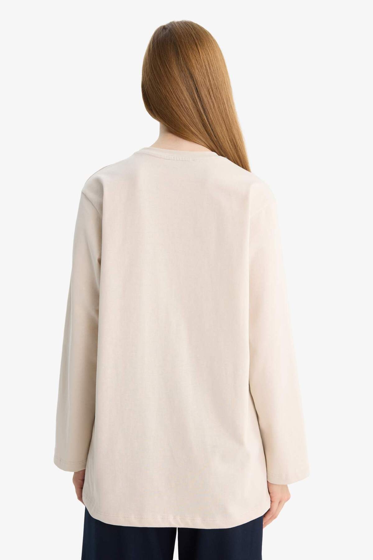 Regular fit kesimi ve bisiklet yaka tasarımıyla bu uzun kollu tişört tunik, rahatlık ve şıklığı bir arada sunar.