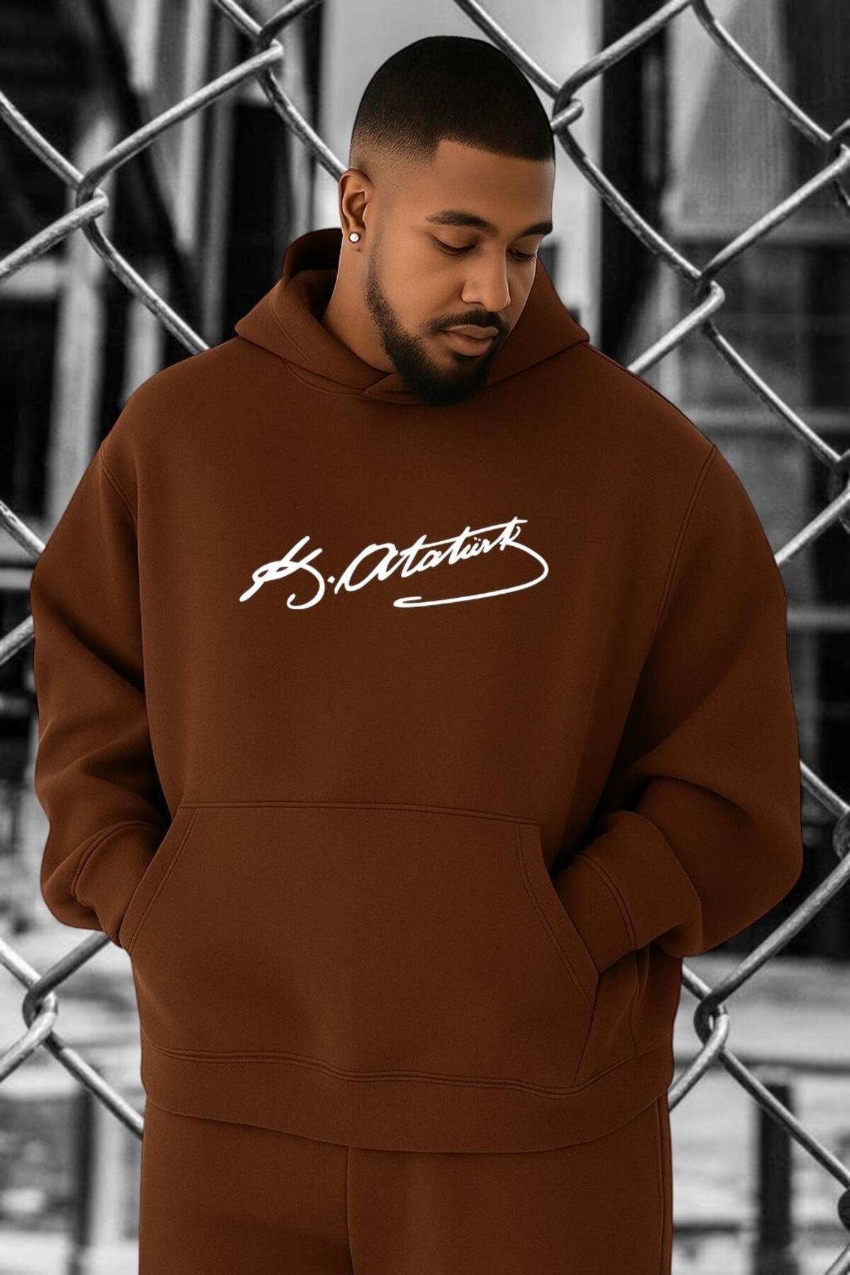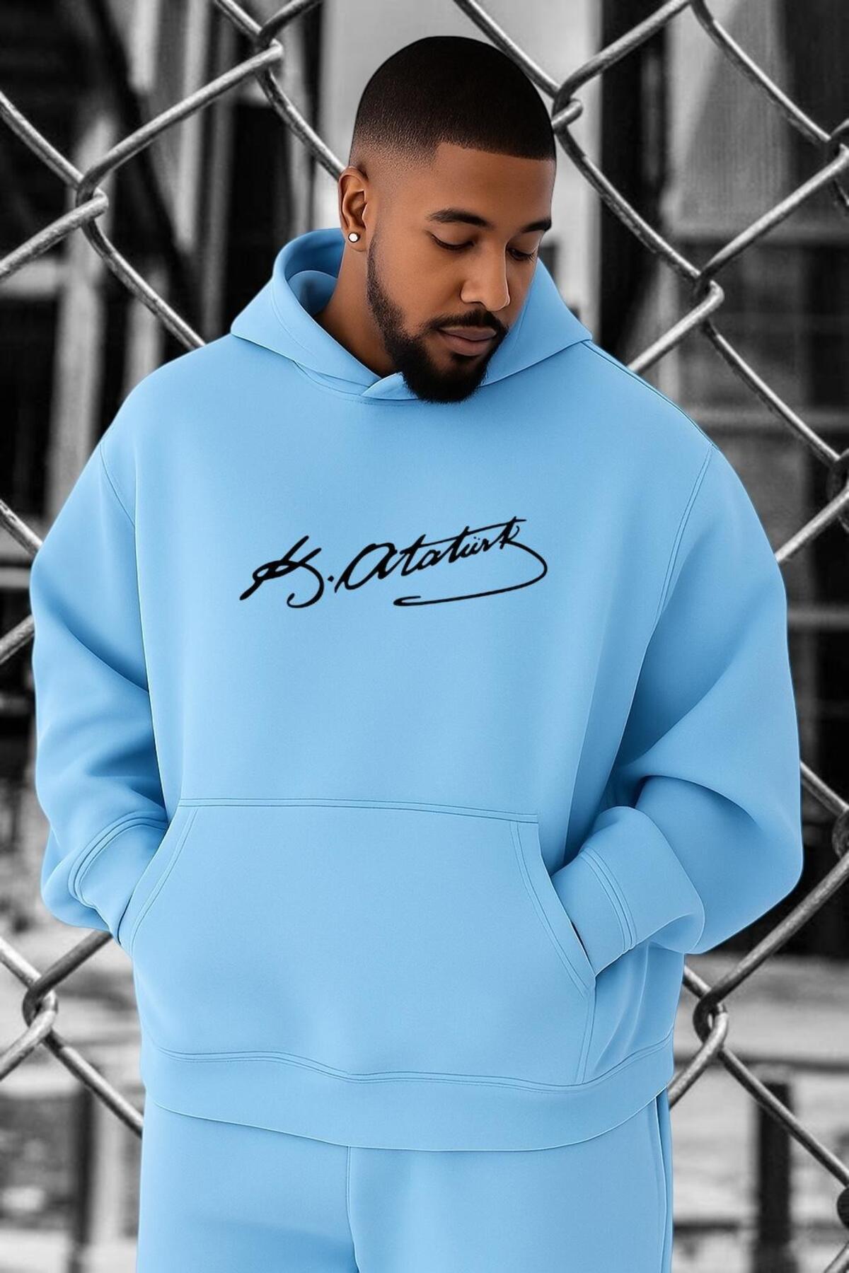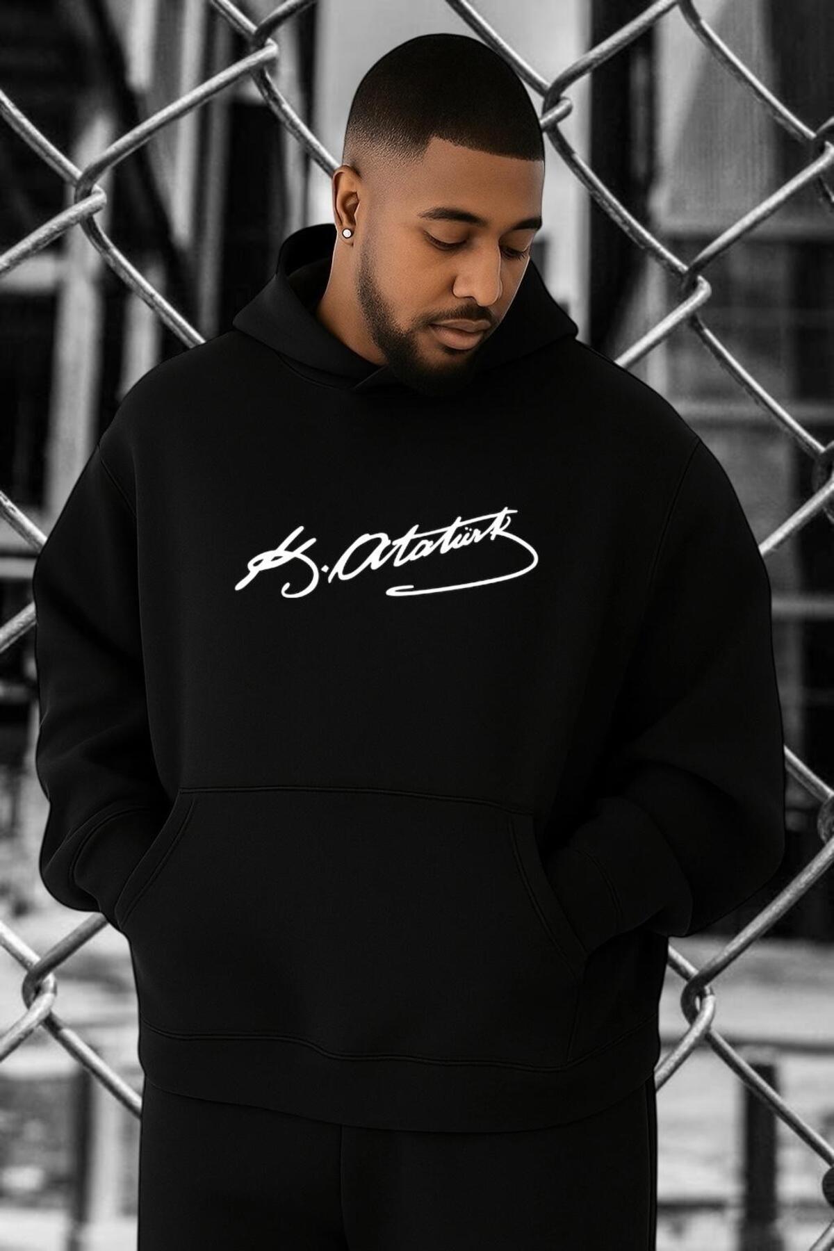 3 İPLİK PENYE ATATÜRK İMZA BASKILI BÜYÜK BEDEN SWEATSHIRT