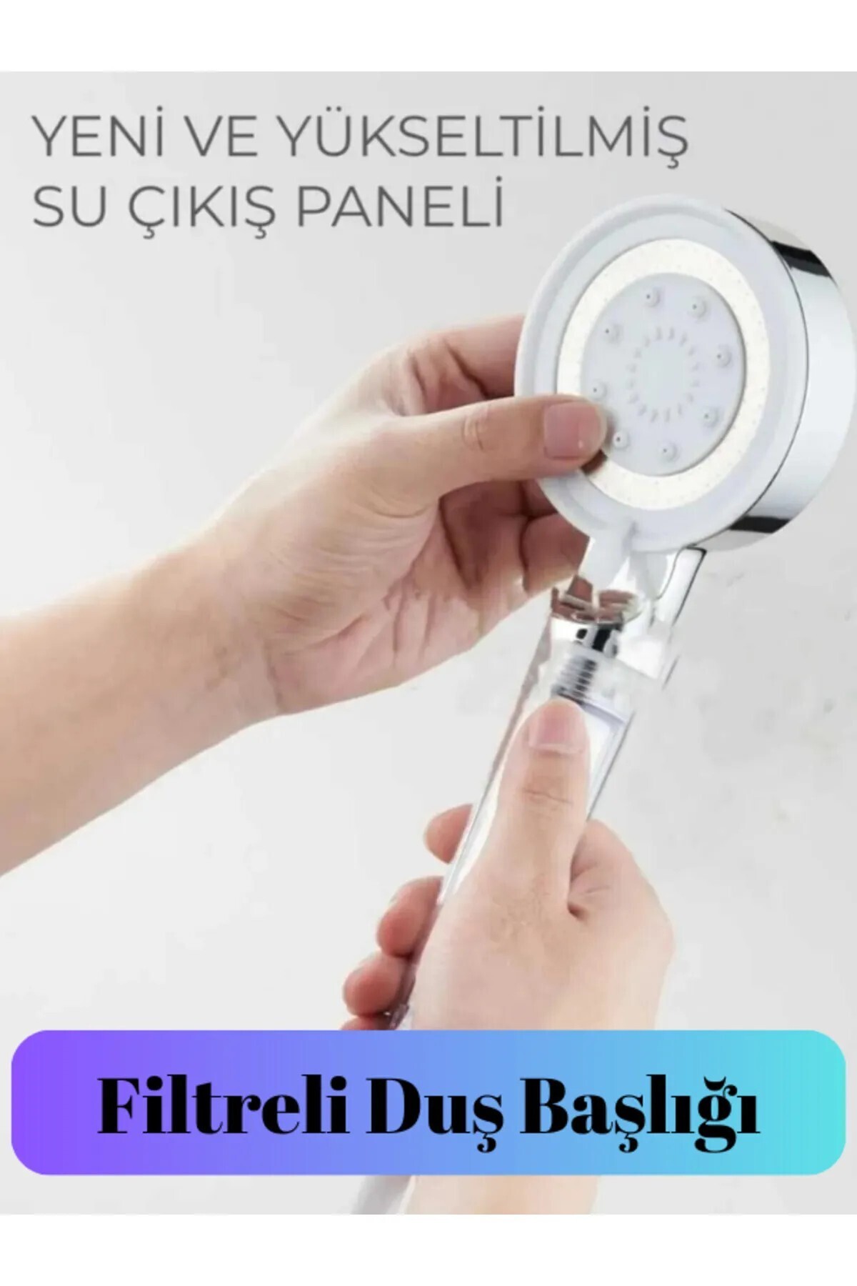 5 Fonksiyonlu Beyaz Banyo Duş Başlığı Çelik Filtreli Kireç Önleyici Yüksek Basınçlı Su Tasarruflu