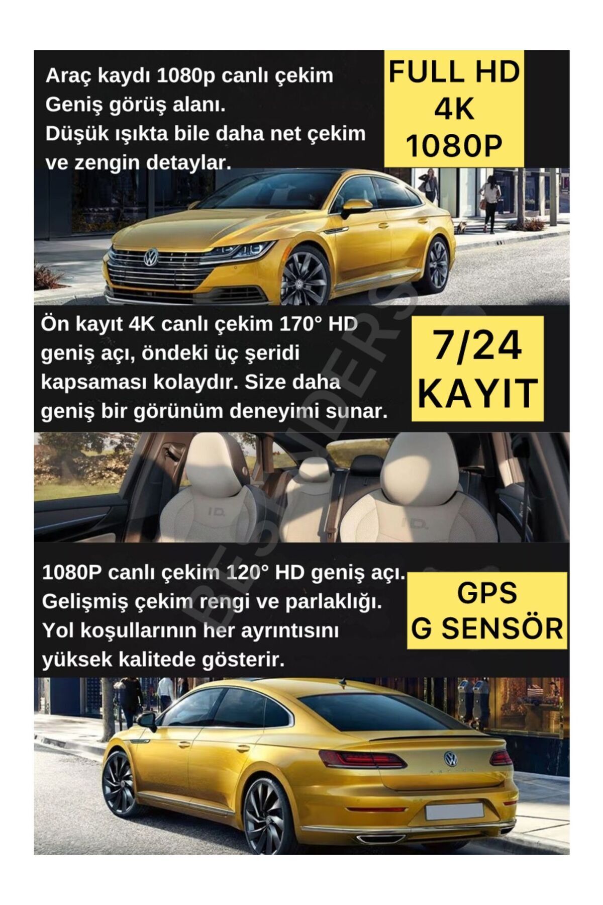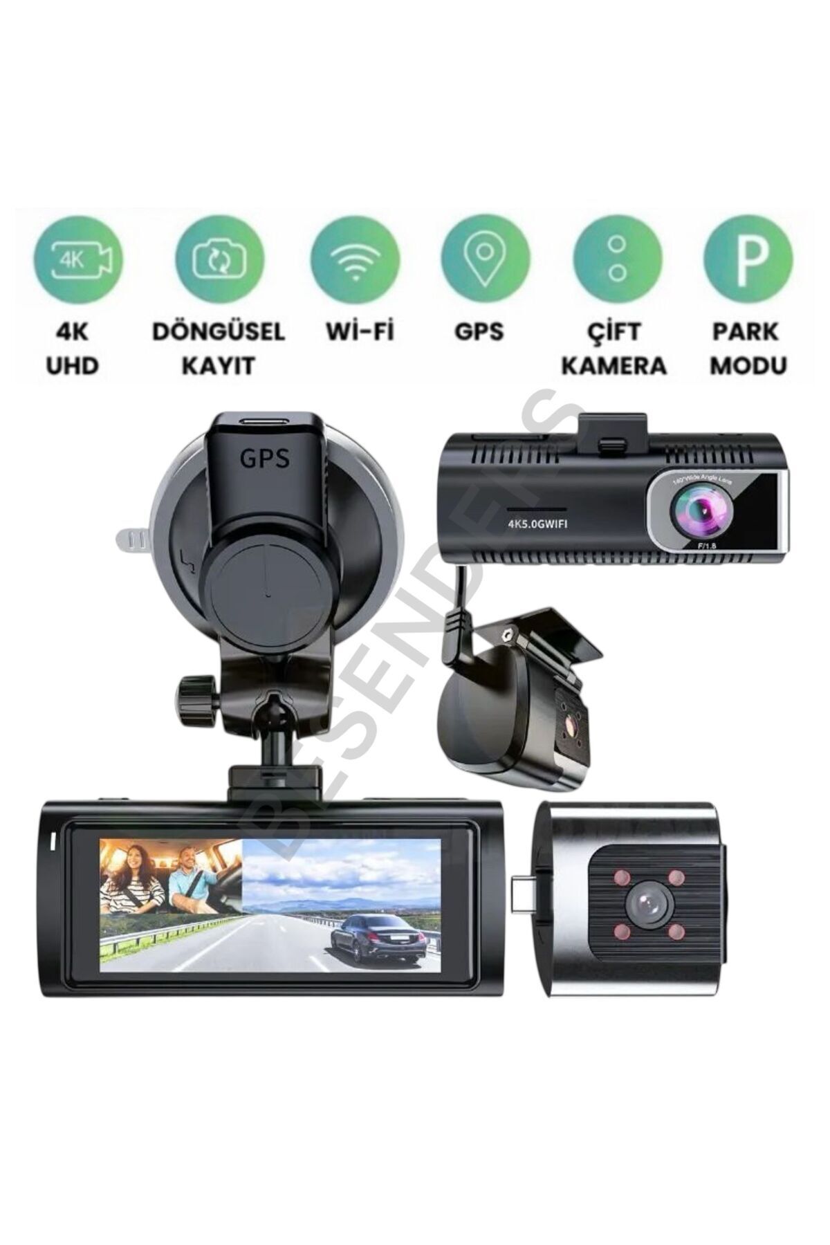 K17 4K 1080P Full HD Çift Kameralı GPS Wifi GSensör Gece Görüş Ön Arka İç Kayıt Araç İçi Dışı Kamera