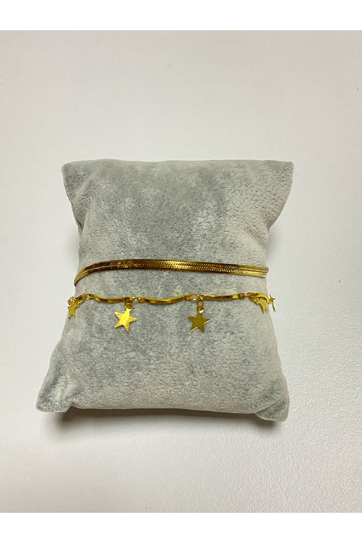 Altın Renk İtalyan Zincir ve Yıldız Desenli 2'li Çelik Halhal