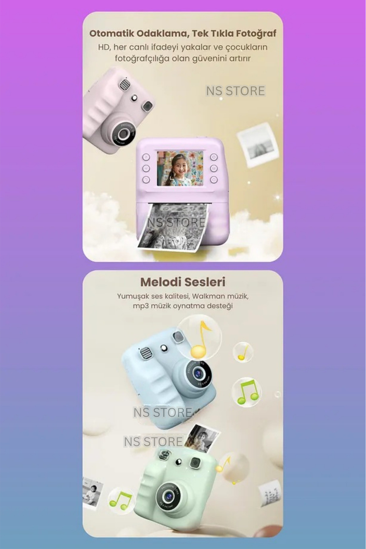 - SD bellek kartı desteği sayesinde geniş depolama kapasitesine sahip olup, anılarınızı saklamanız için pratik çözümler sunar.