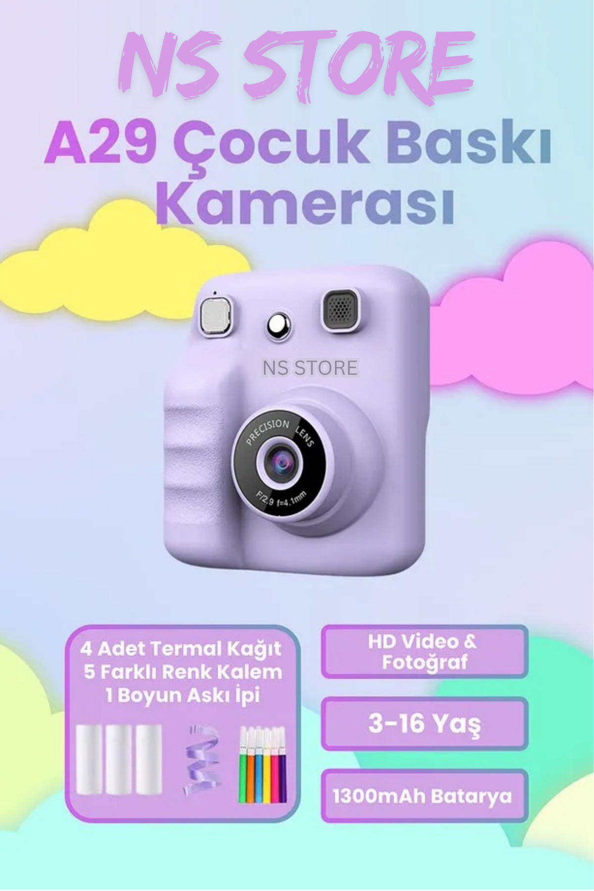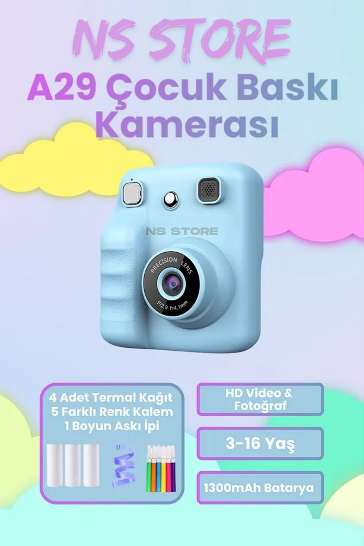 - Uzun süreli kullanım için ideal olan şarj edilebilir özelliğiyle çocukların eğlenceli anlarını kaydetmelerine olanak tanır.